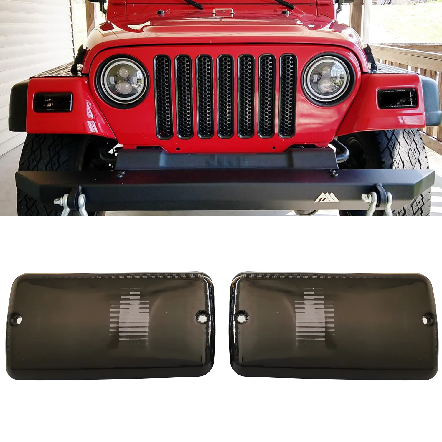 Pair For 1997-2006 Jeep Wrangler TJ Chassis Bumper Smoke Turn Signal Lights Lamp