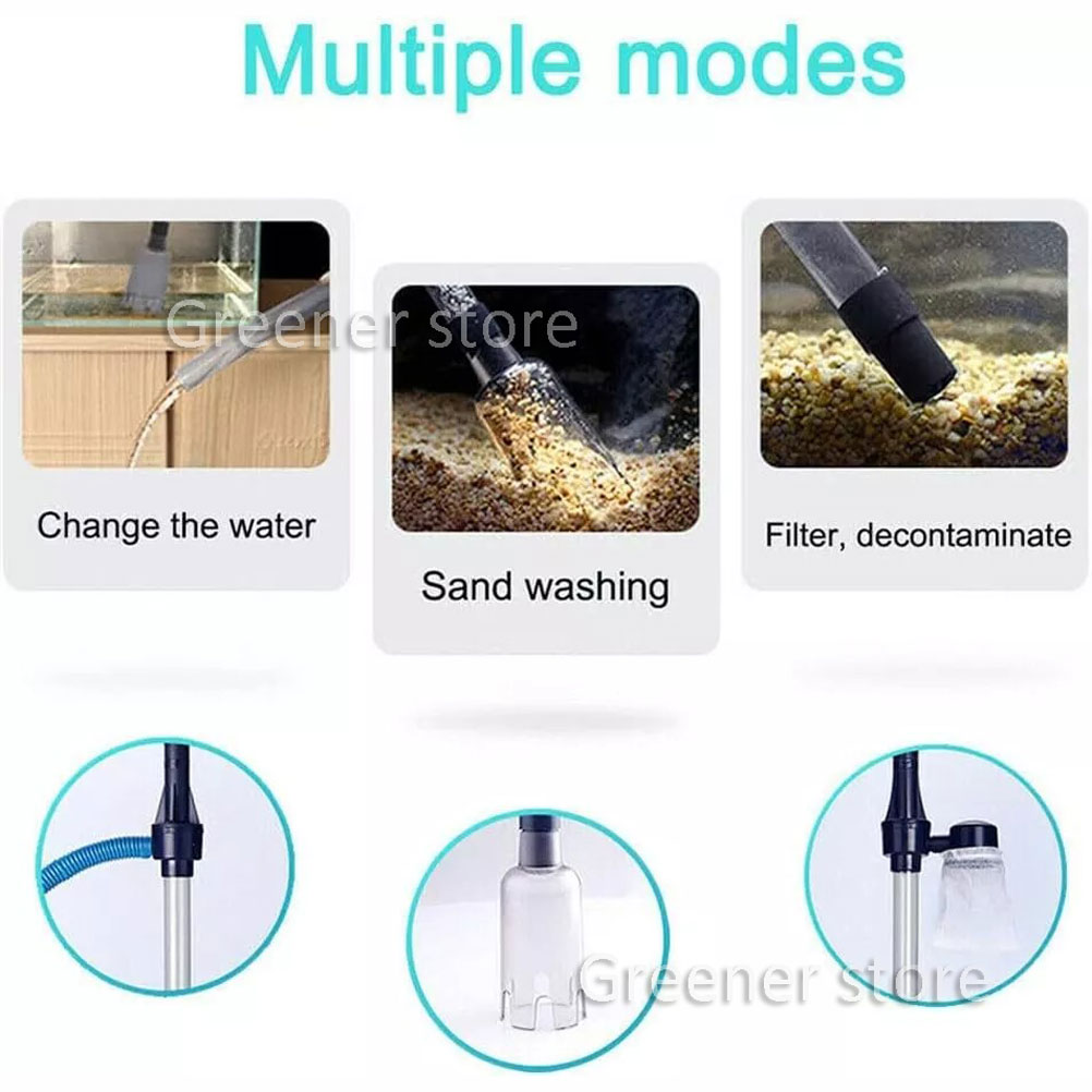 **MULTIFUNCTIONAL AQUARIUM GRAVEL CLEANER: Electric aquarium vacuum gravel cleaner can change water, filter water, sand washing, brush fish tank, suck manure, and water cycle. It adopts a siphon design principle to quickly improve water quality and create a clean and comfortable living environment for your fish.