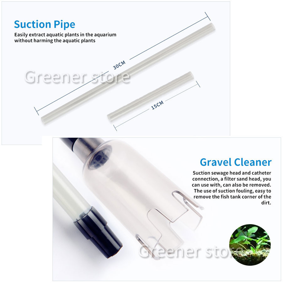 **FUNTION: Aquarium gravel vacuum is used to remove fish poop, debris, uneaten food, absorb dirt from the sandbed, as well as to clean residues and algae on the aquarium walls. Built-in a corrosion-resistant ceramic shaft and is suitable for both freshwater and saltwater aquariums.