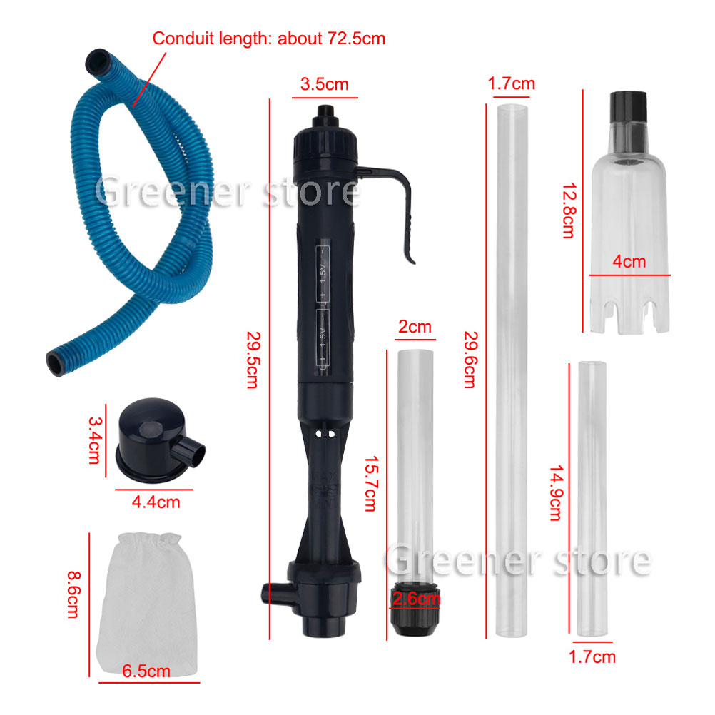 **EASY TO USE:The electric fish tank cleaner vacuum saves time and effort over manual water changes and manual tank cleaning. It uses a 4-layer filtration system, When using, hold the handle and press down, water will automatically be sucked into the pipeline and flow out through the hose. It can efficiently filter fish feces and food debris to filter water and circulation in the fish tank. The filter sponge can be washed and reused repeatedly