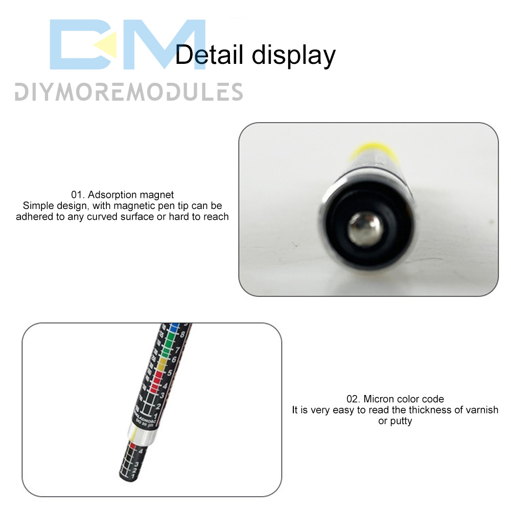 Micron colour scale, very easy to read the thickness of varnish or putty
