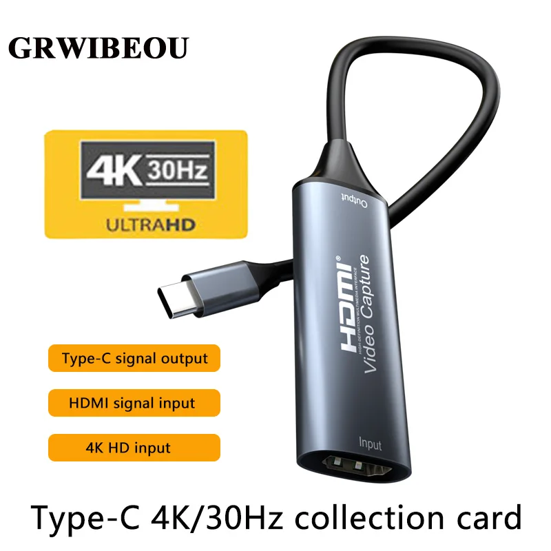 Type-C 2.0 Video Capture Card HDMI-compatible 4K 30Hz Game Grabber Record for Switch Xbox PS4/5 Live Broadcast Game