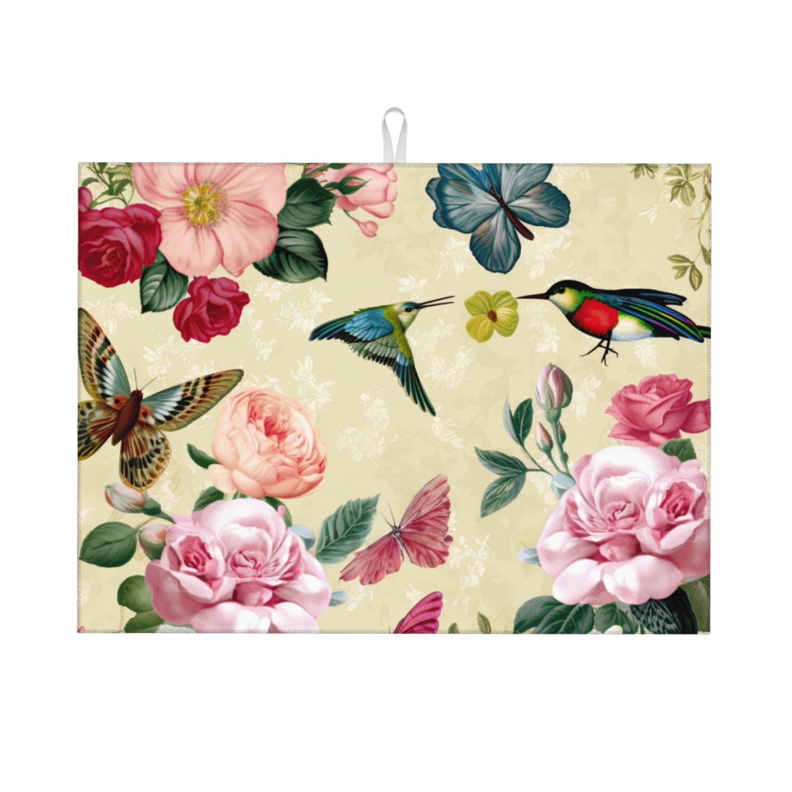 Product: Large Dish Drying Mats for Kitchen Counter - 18x24 Inch - Quick-Drying, Machine Washable Draining Pad Size: 18x24 Inch Fast Drying & Easy Storage: Our Dish Drying Mat is designed to dry your dishes and cookware quickly. Once they're dry, simply fold up the mat and store it in any drawer, cabinet, or closet. It's always ready for use whenever you need it. Multiple Uses: 1. Made with absorbent microfiber in a 3-ply design, our kitchen drying mat offers a soft and cushioning surface. The high-quality microfiber and foam absorb dishwater rapidly, keeping your countertops dry and your dishes safe. 2. You can confidently place knives, silverware, serve ware, bottles, stemware, tableware, and more directly on the drying mat. 3. It can also be used as a countertop insulation pad to protect against heat and hot items, protecting against heat and scalding.