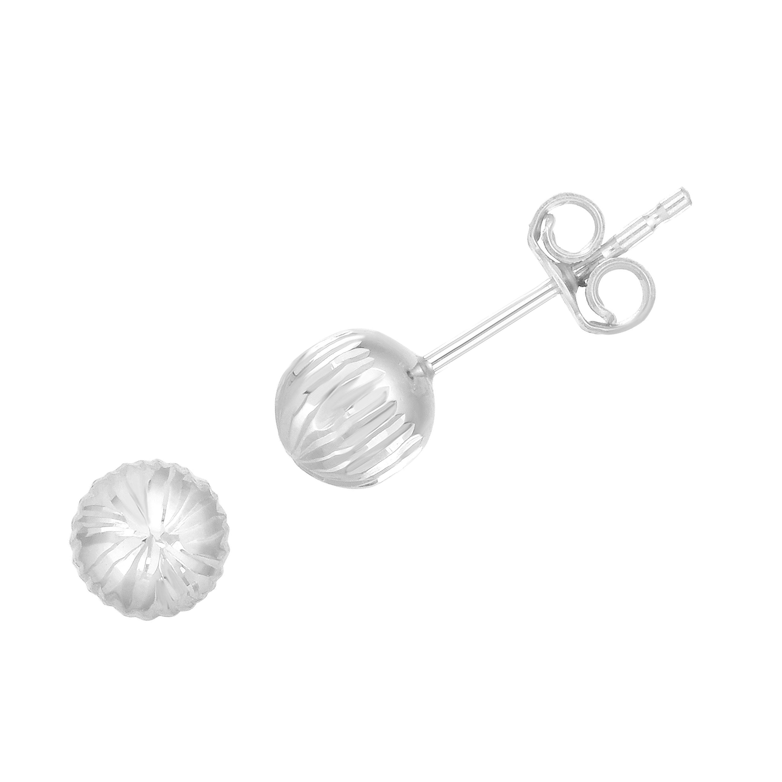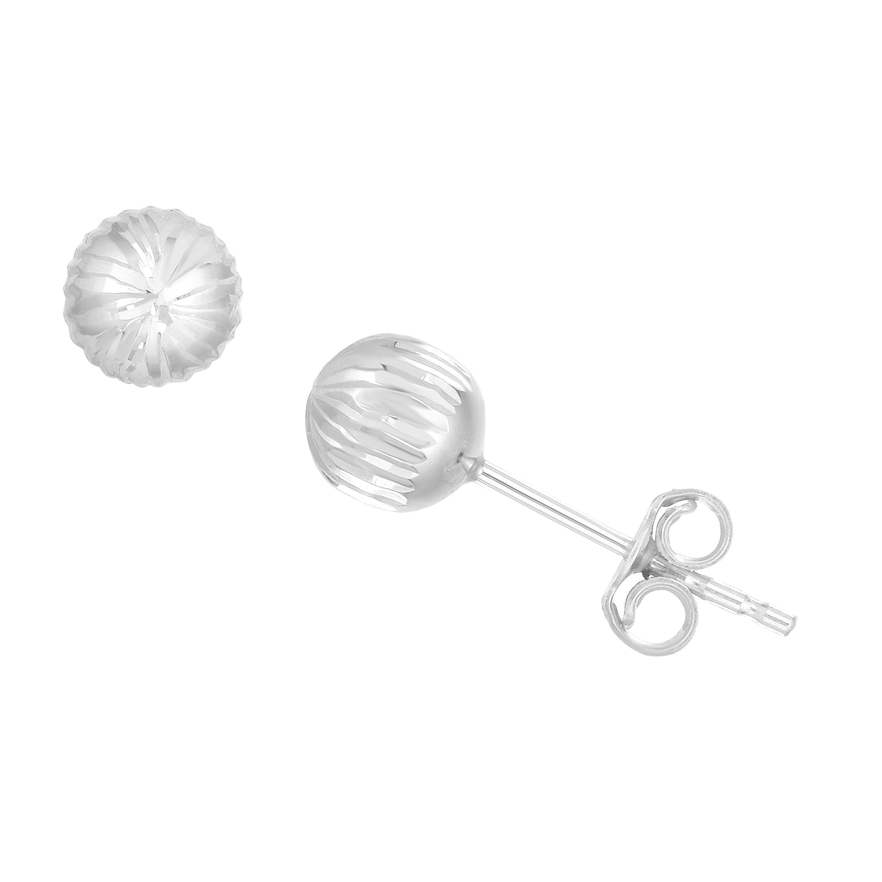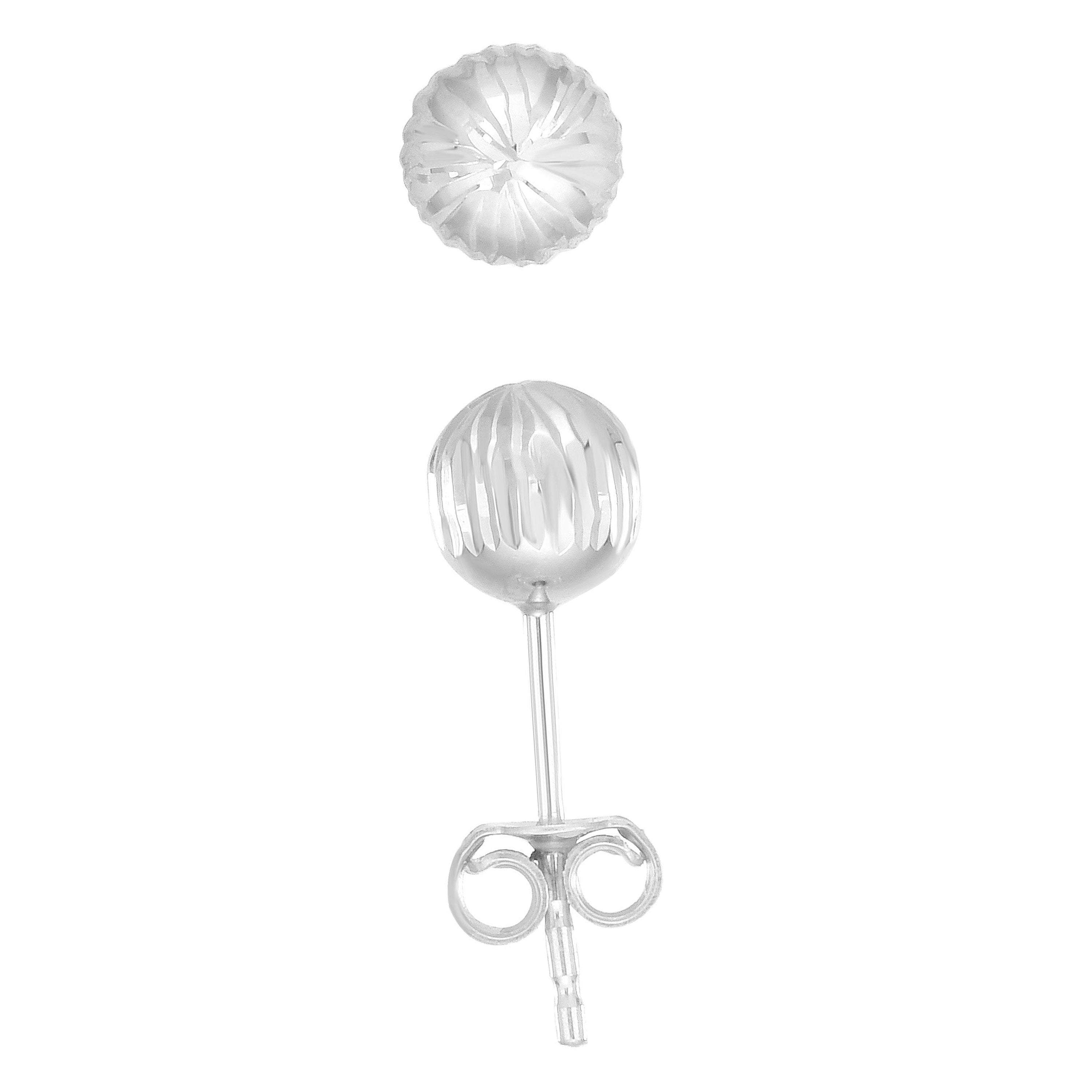 14K White Gold 5mm Ball Stud Earrings with Linear Cut Finish and Push Back Clasp