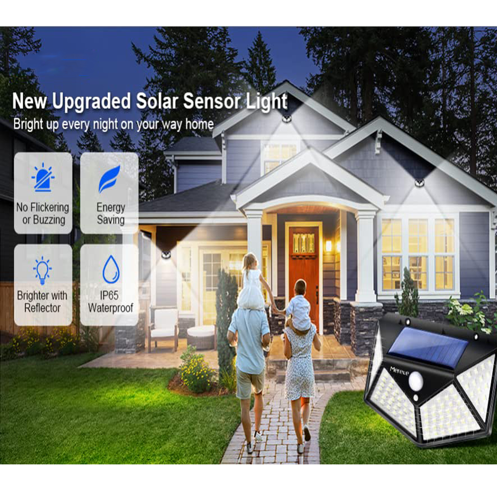 Durable & IP65 Waterproof: Made of high-strength ABS+PC material, solar wall light is certified with IP65 waterproof, can withstands rain, wind, snow, ice and wet conditions.Perfect for any outdoor location, such as front door, back yard, porch, patio, pathway, and driveway,etc.