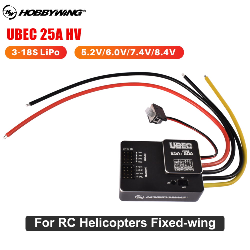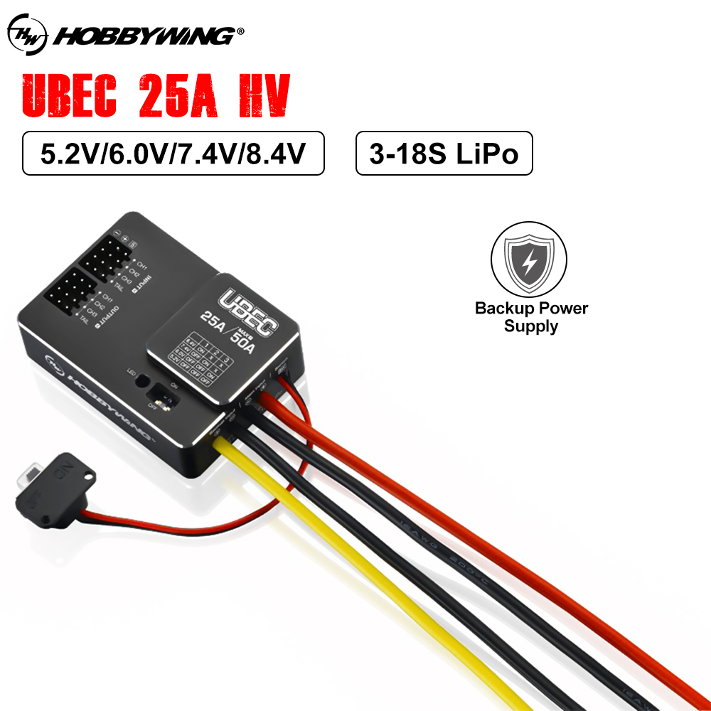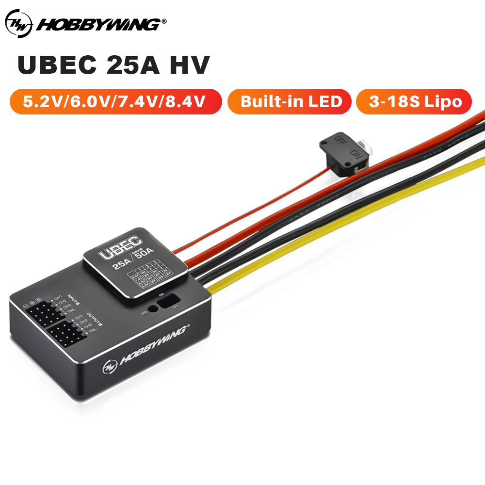 HOBBYWING UBEC 25A HV 5.2V/6.0V/7.4V/8.4V Built-in LED Indicator 90% Conversion Efficiency For FPV Racing Drone Helicopters Fixed-wing Aircraft
