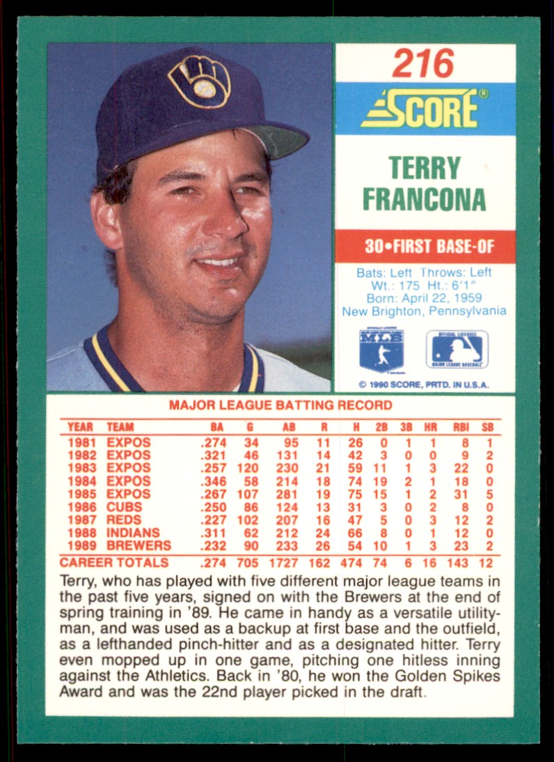 | 1990 Score 216 Terry Francona |
