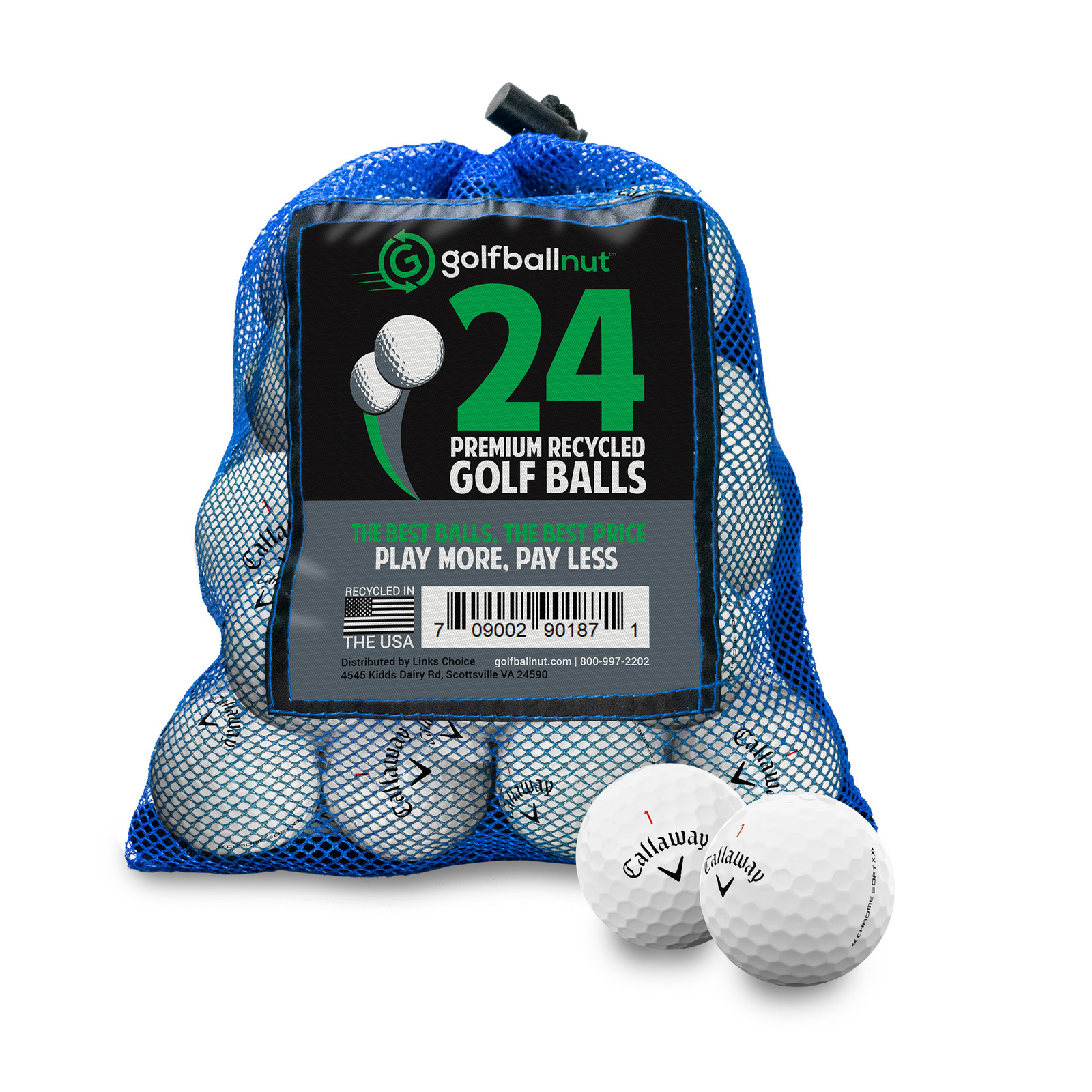 The used Callaway Chrome Soft X golf balls deliver tour-level performance with a firmer feel and enhanced distance. Known for its dual-core design, this ball provides high ball speed and lower spin with the driver, while offering exceptional control and spin around the greens. Ideal for golfers seeking precision and power, the Chrome Soft X maintains its excellent playability even after previous rounds, making it a great value for serious players.