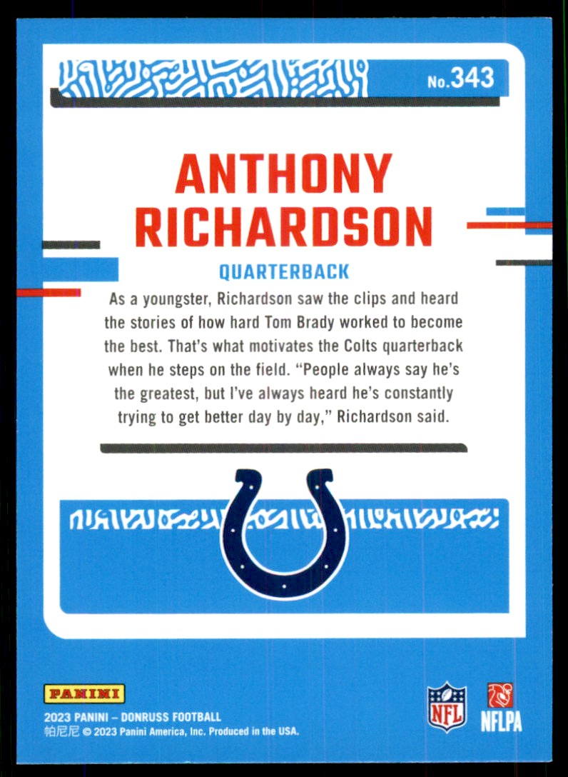 | 2023 Donruss Anthony Richardson Indianapolis Colts #343 |