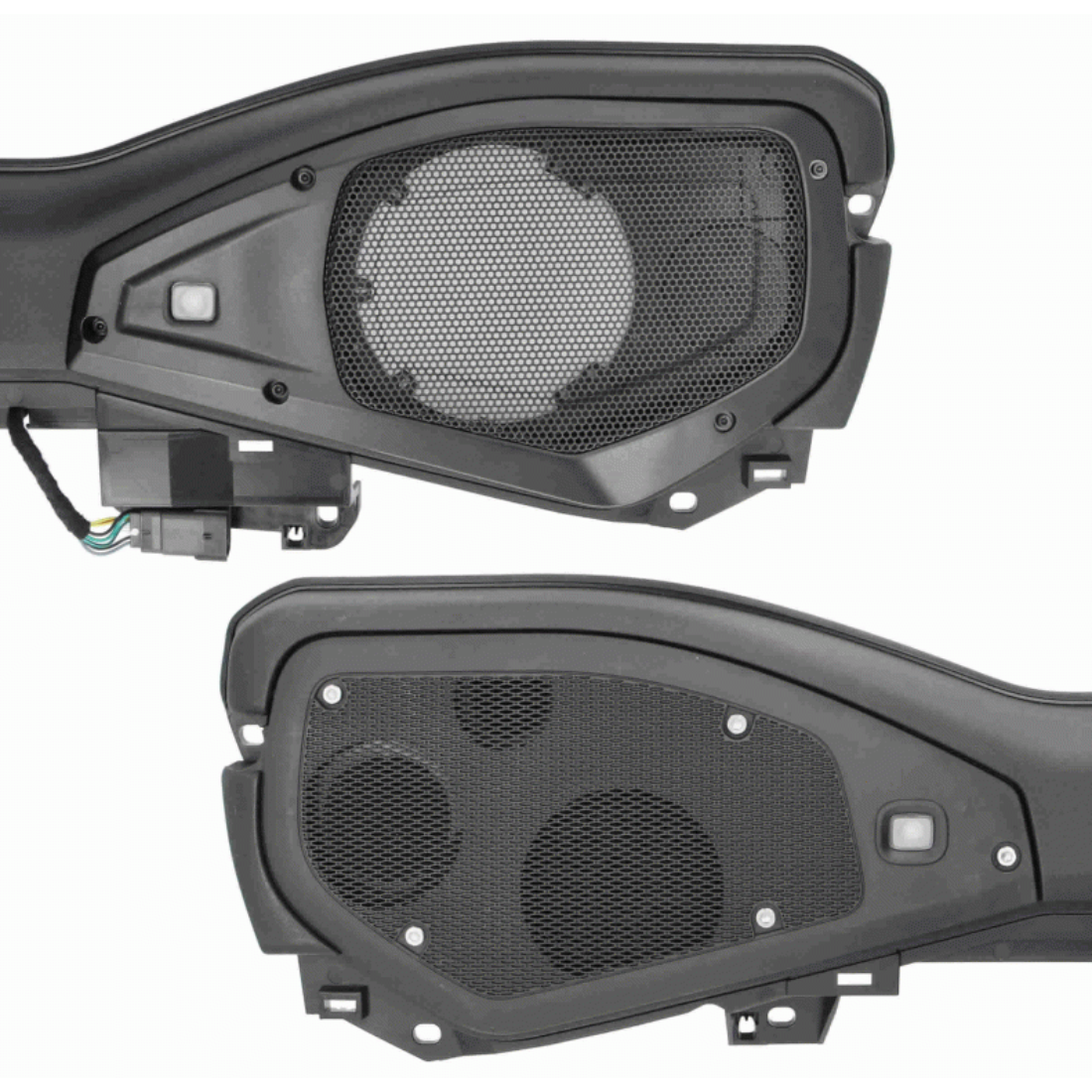 This adapter allows you to upgrade your Jeep’s soundbar from the 4” and 3” factory speakers to an aftermarket speaker 6” to 6.75” by cutting the interior of the factory soundbar. It offers an optional tweeter location and includes adapter plates, speaker harnesses, grille replacements, and all hardware required for installation. The replacement grilles feature a factory-style textured finish with a custom-stamped metal grille for a stylish look.