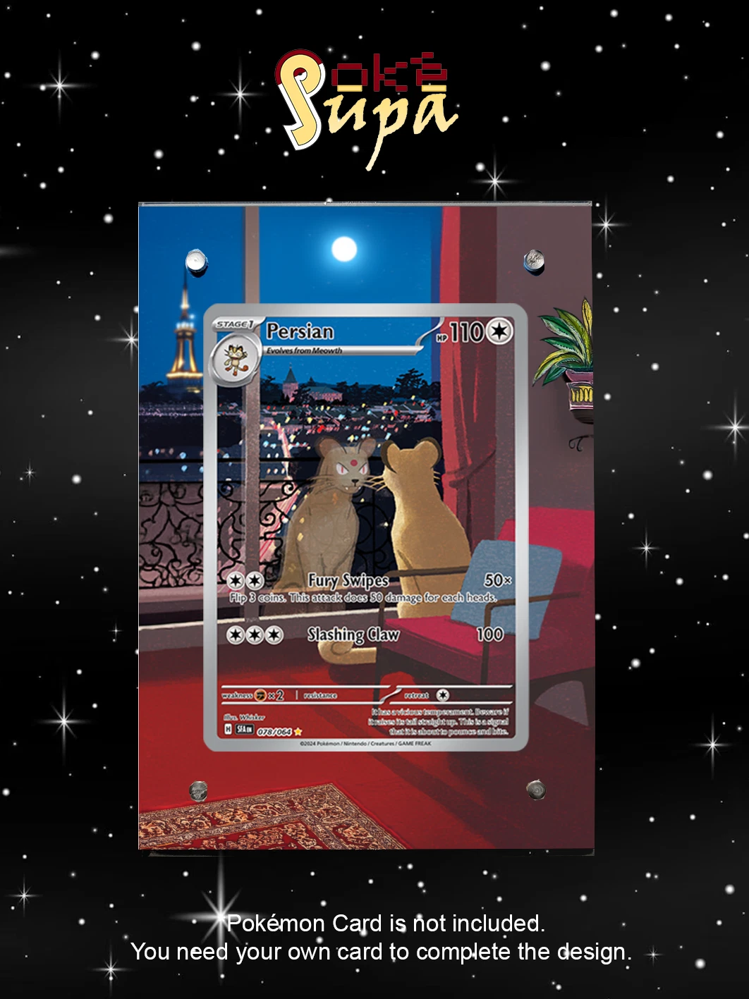 This product is not intended for children under 36 months as there is small parts that are at risk of choking hazard. The card and plush are not included in this purchase. Only the extended artwork and display case are for sale. Our products comes with pre-installed penny sleeve, which allow perfect positioning and prevent the card from damage (although be careful when handling our product not to damage your card). The pre-positioned sleeve may be removed at your own risk, although we do recommend to keep it and to use a cut to size thin sleeve within the included sleeve for maximum protection. However the use of thick sleeve might not be compatible with the magnet strength (including sealed plastic packaging for any promo cards). This is a display case only and we strongly suggest to remove the card from the display case and store it separately when you are moving the product.