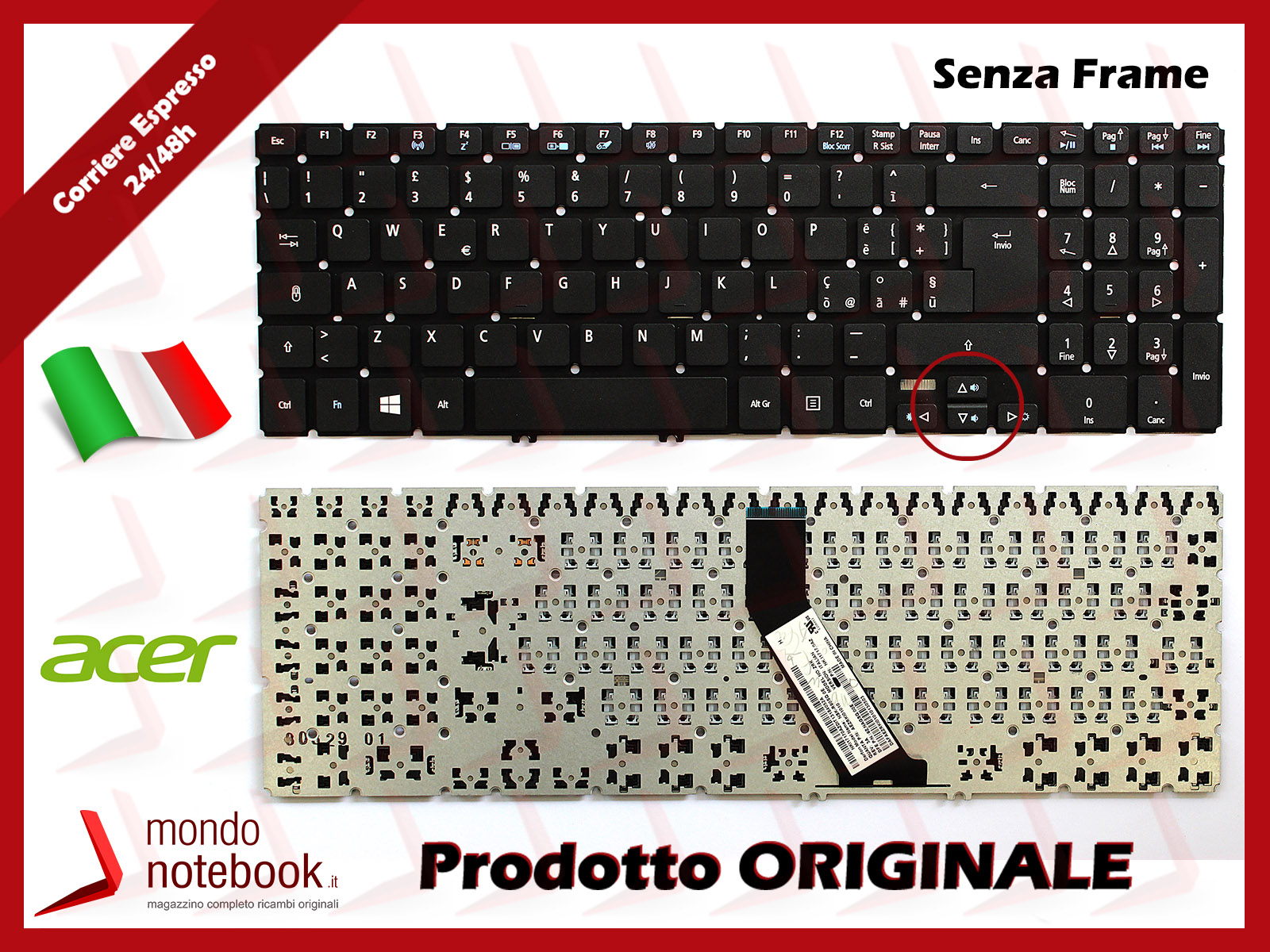 Prima di effettuare l'acquisto verificare che sia identica la disposizione dei tasti direzionali Su e Giù con la tastiera in vostro possesso.