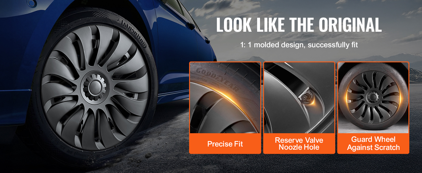 Crafted from a durable ABS+PC composite, these hubcaps provide excellent impact & abrasion-resistance. Each hubcap is 1:1 molded, offering reliable safeguard while enhancing your vehicle's style. Keep your wheels safe and your ride looking chic, whether for daily commutes or road trips!