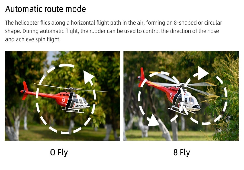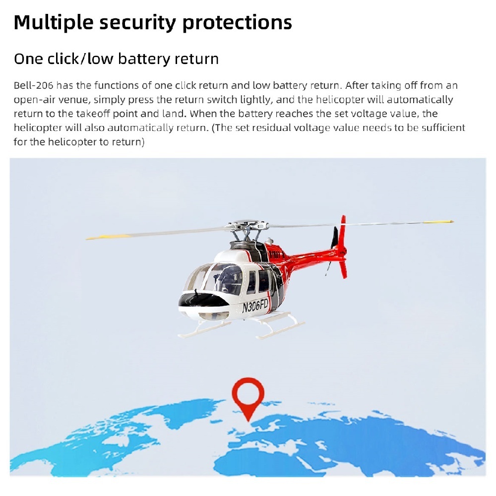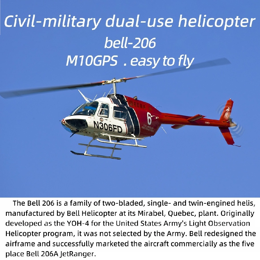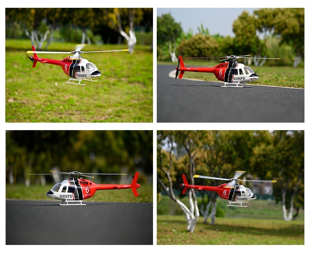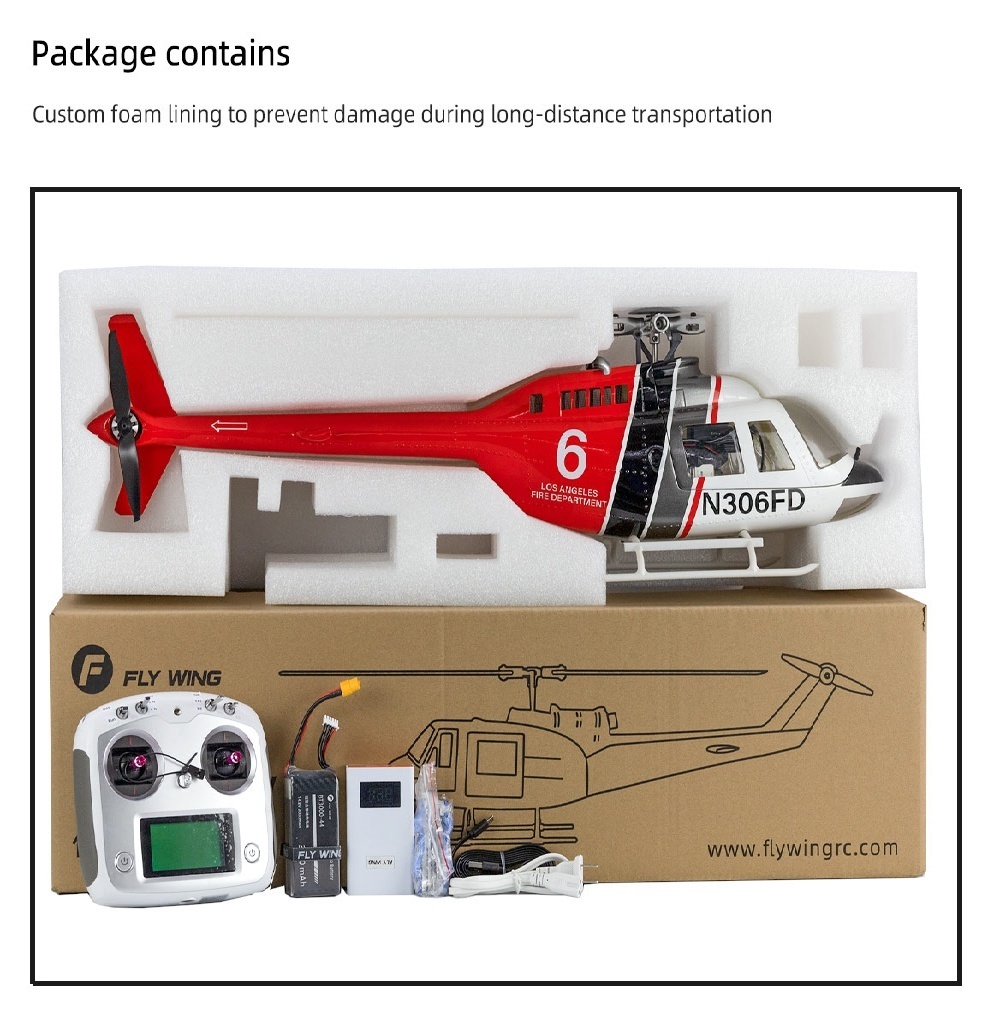 Flywing 6CH brushless GPS helicopter two rotor blade and four rotor blade Bell 206 with ACE flight controller. It made of high-quality glass fibre reinforced plastic, have been designed to provide a better flight experience with aircraft-grade components and are equipped with an airtight, fog-proof design.