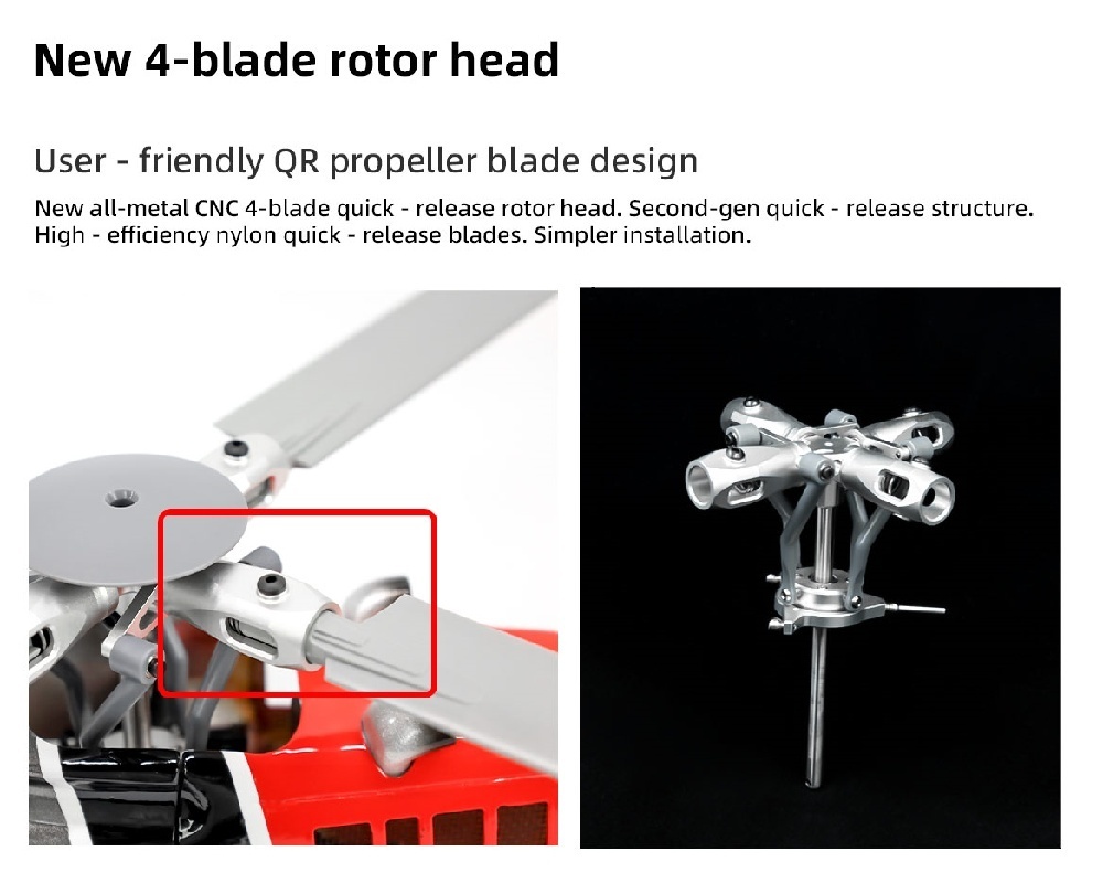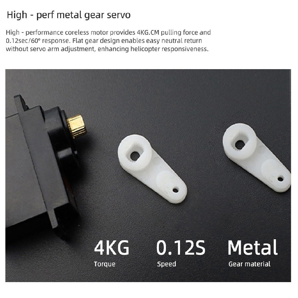4. Flybar rotor head to use the ultra-low center of gravity design enables the rotor level close to the body's center of gravity, and effectively enhances the roll, spin turn, the pendulum 3D action crisp, helicopters hover state to a higher degree of stability, with a more strong appreciation, the pros and cons of dental Rod to facilitate debugging pitch.
