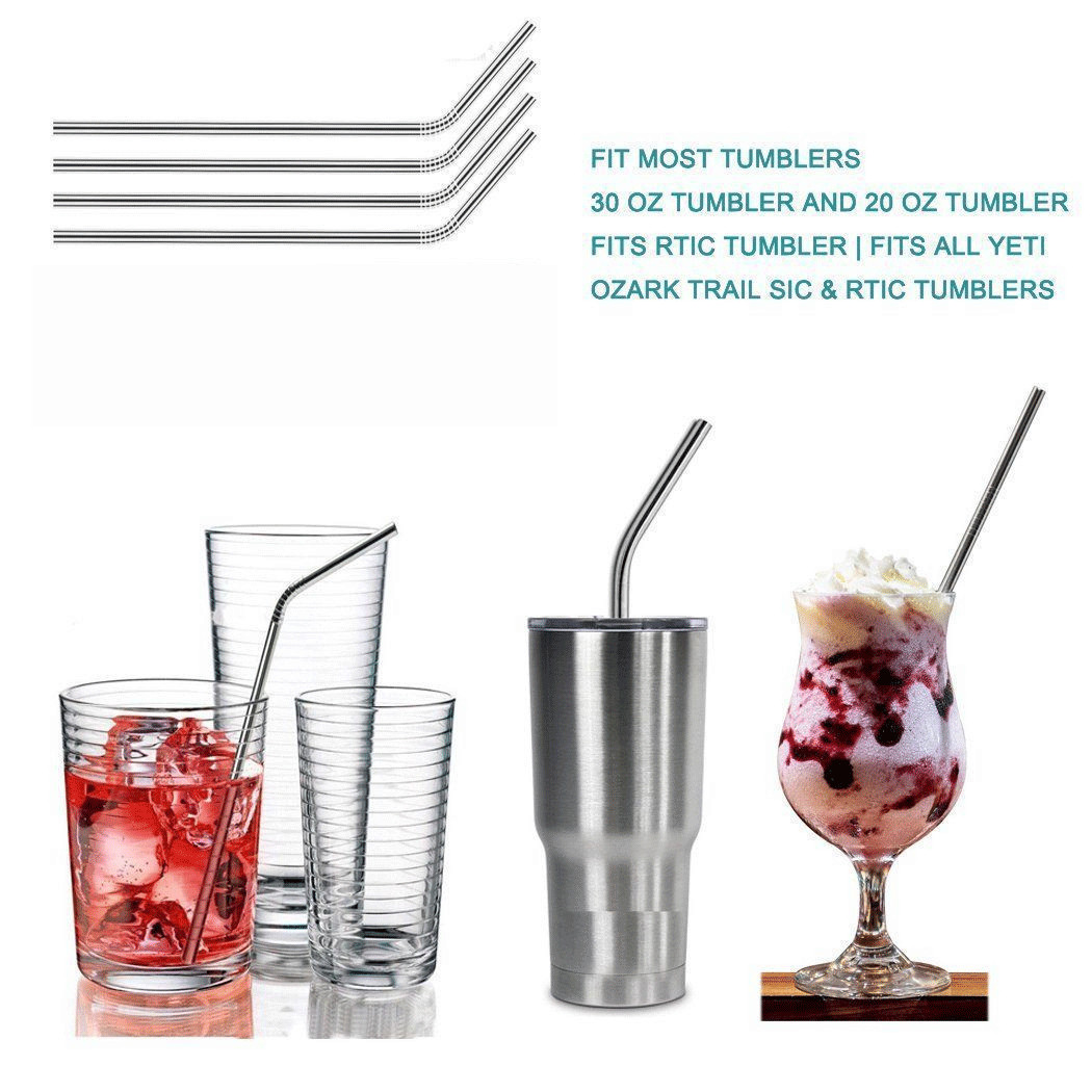 10.5" Long Reusable Stainless Steel Drinking Straws Metal for 30oz Tumblers