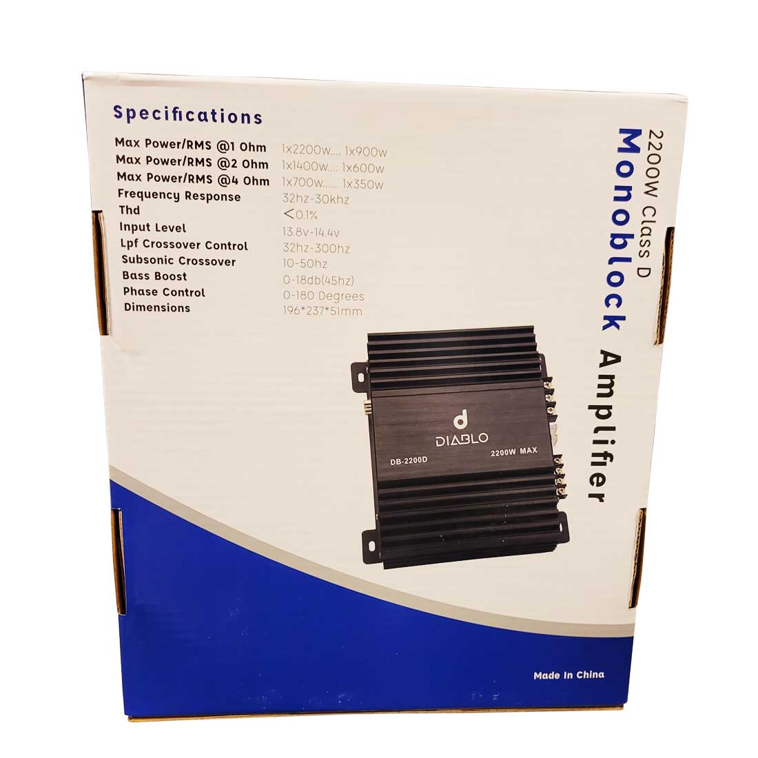 1-Channel Monoblock 2200 Watts Max Class-D 1-Ohm Stable Car Audio Amplifier