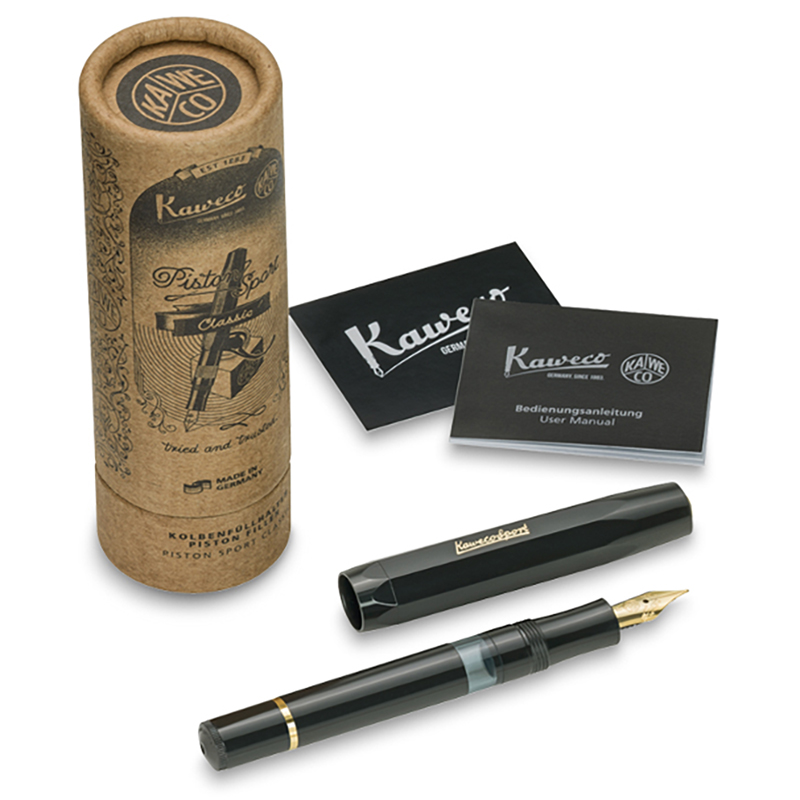 To find the nib size that best accommodates your handwriting style, check out the Kaweco nib size comparison video to see all the nibs in action. Weighing just 10 grams, the piston filler is almost weightless in the hand, ensuring long-lasting writing pleasure. The fountain pen is entirely manufactured, assembled and checked by hand in Germany. As with traditional Classic Sport pens, the clip is optional.