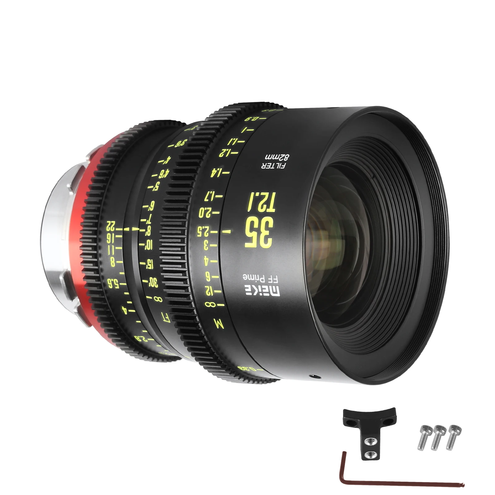 It has industry-standard 0.8mm pitch gears on the focus and aperture ring.The lens design of the Meike 35mm T2.1 FF-Prime consists of fourteen elements in nine groups.The aperture mechanism consists of 11 aperture blades. The minimum focus distance is 33mm.