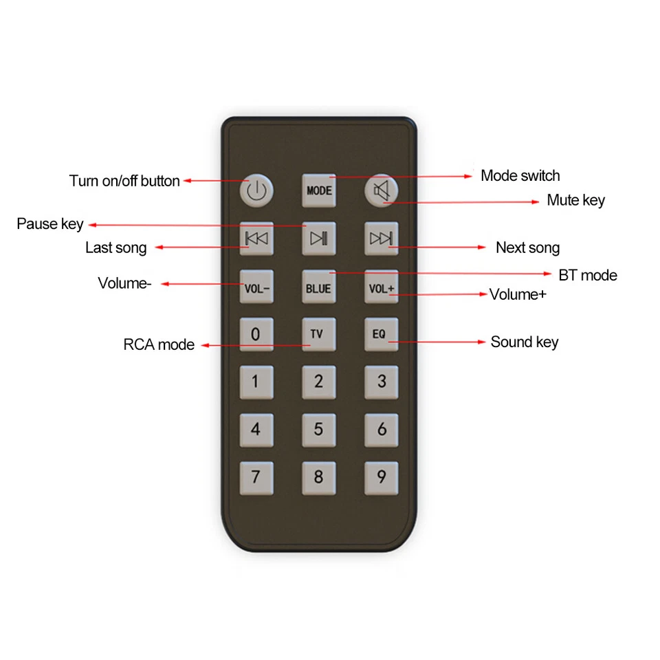 - Input Audio: Bluetooth/TF card/U disk/3.5mm/optical fiber/RCA