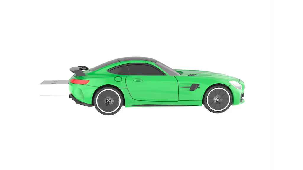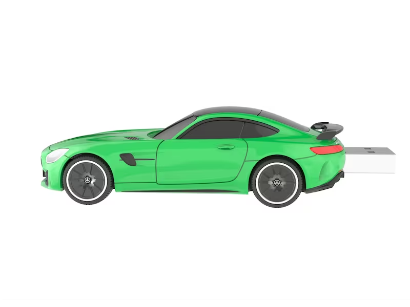 16 GB unter der Haube: Mercedes-AMG USB-Stick AMG GT R, grünIn diesen Kofferraum passt jede Menge rein. Einfach rückwärts einparken, anschließen und los geht’s. Mit Ihrem neuen original Mercedes-Benz USB-Stick in Form eines grünen AMG GT R verbinden Sie das Praktische mit dem Vergnüglichen. Bei einer Speicherkapazität von 16 GB haben Sie reichlich Platz für Dateien, Fotos etc. Ausgestattet ist der kleine Flitzer mit USB 2.0 und somit mit allen gängigen Betriebssystemen kompatibel. Ein echter Hingucker am Arbeitsplatz. Jetzt müssen Sie nur noch entscheiden, ob Sie ihn selbst behalten oder verschenken wollen.ProduktmerkmaleUSB 2.0Speicherkapazität 16 GBModell AMG GT RFarben grün, schwarzMetall, KunststoffMaße 6,8 x 3 x 1,7 cmKompatibel mit allen gängigen BetriebssystemenOriginal Mercedes-Benz Collection