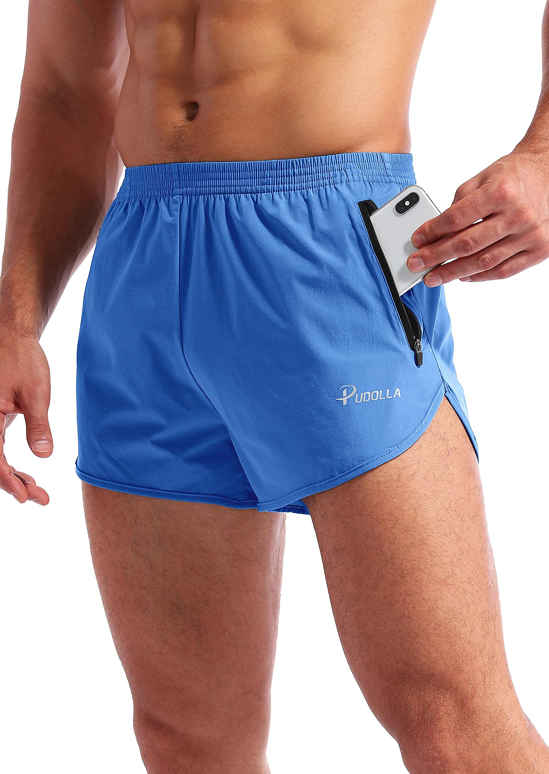Men’s Running Shorts 3 Inch Quick Dry Gym Athletic Workout Shorts for Men with Zipper Pockets(Royal Blue Large)