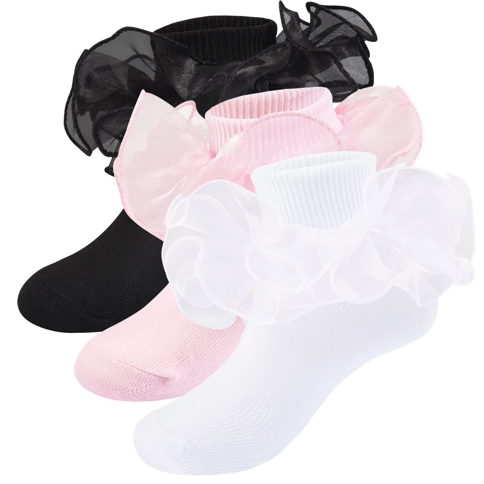 - Available Occasions: Girls ruffle socks decorated with fluffy double-layer lace, shiny organza ruffles. The ruffle on these socks is gorgeous and perfect for flower girls, pageants, weddings, parties, costumes, Easter, dance or other formal activities.
