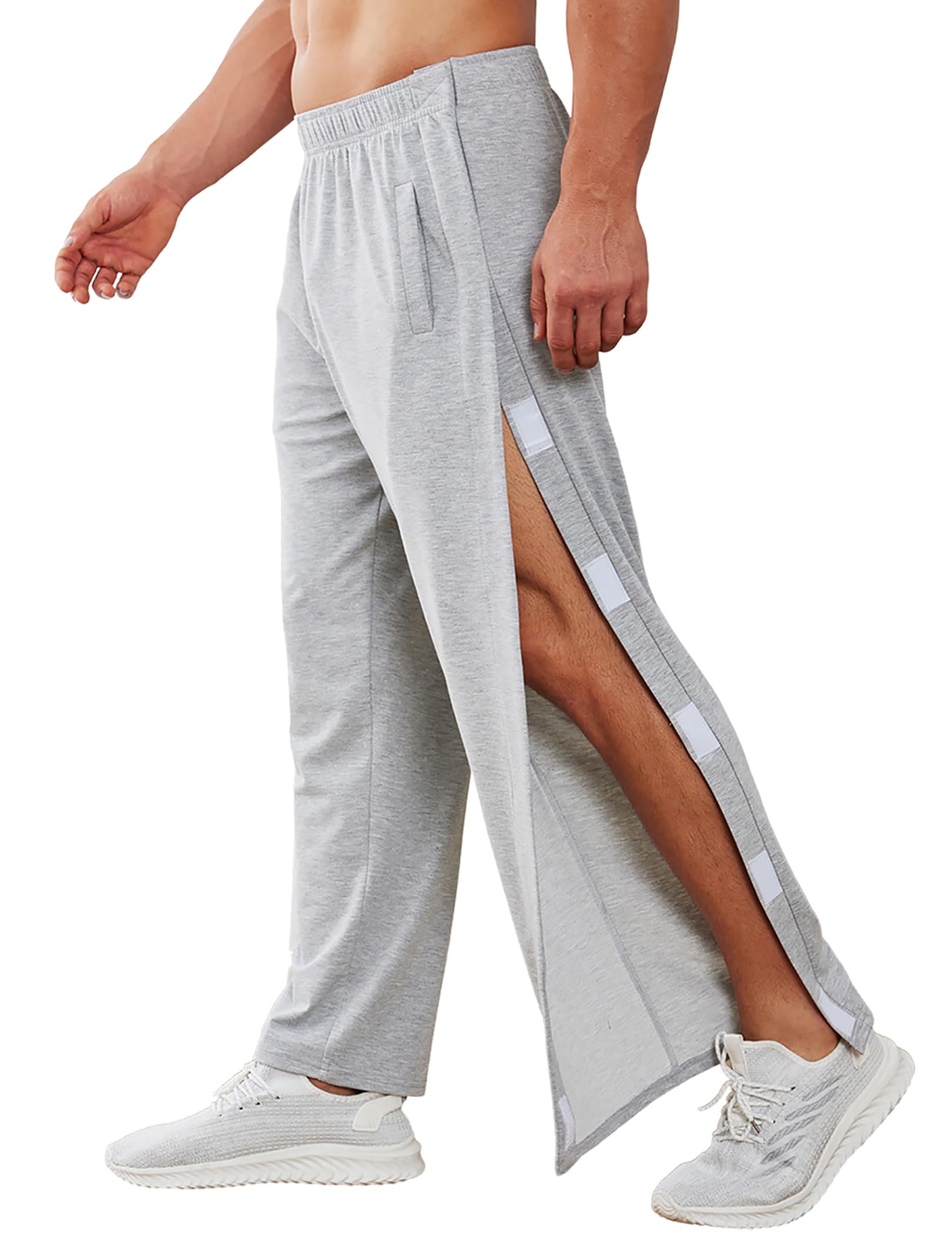 - 【Open Design】The men's breakaway pants are designed with 2 sides full tear away side hook and loop, from top waist to bottom with Magic Sticker. They can come completely apart .you can get them on and off easily, It's definitely a must have for anybody with limited mobility, Especially conveniently after surgery.