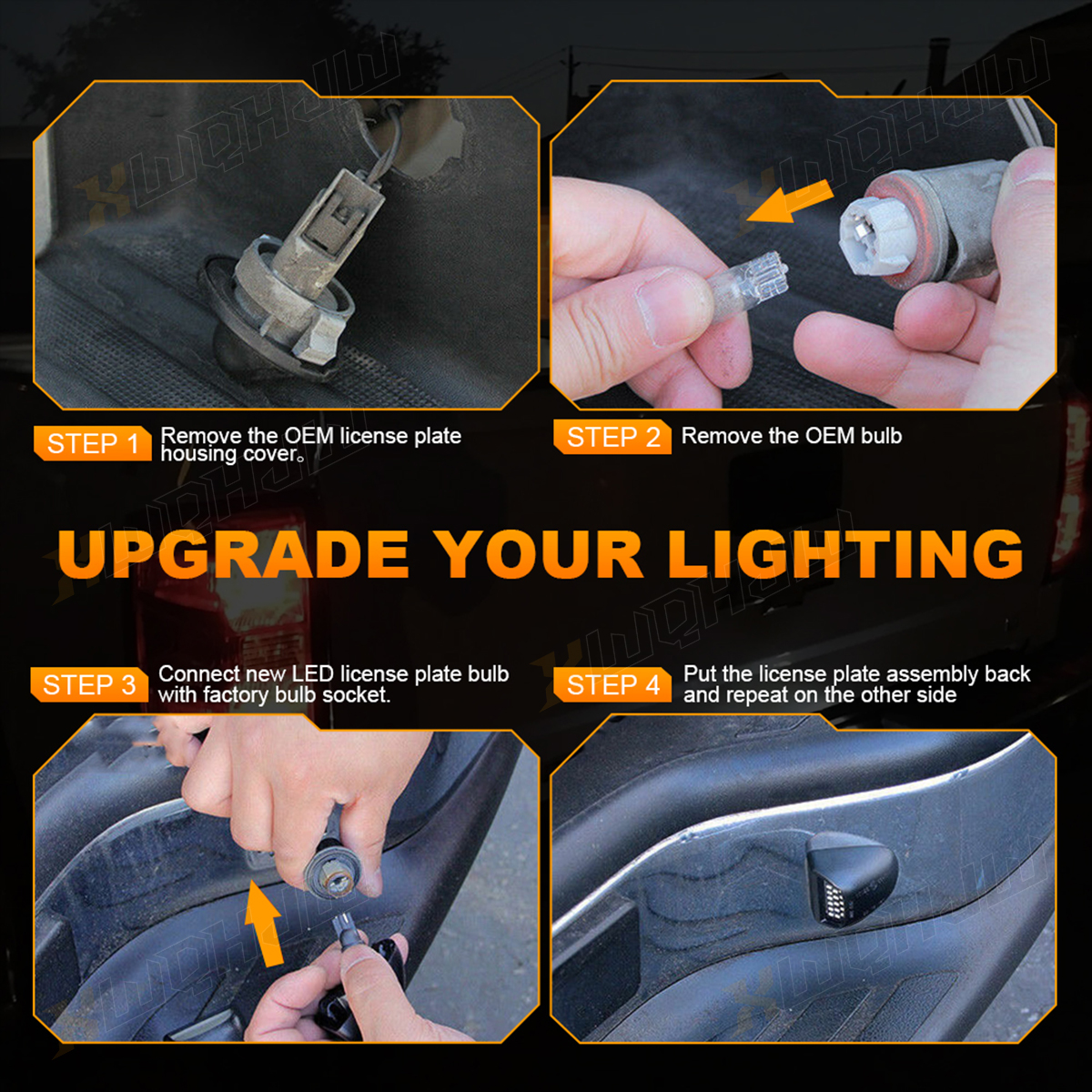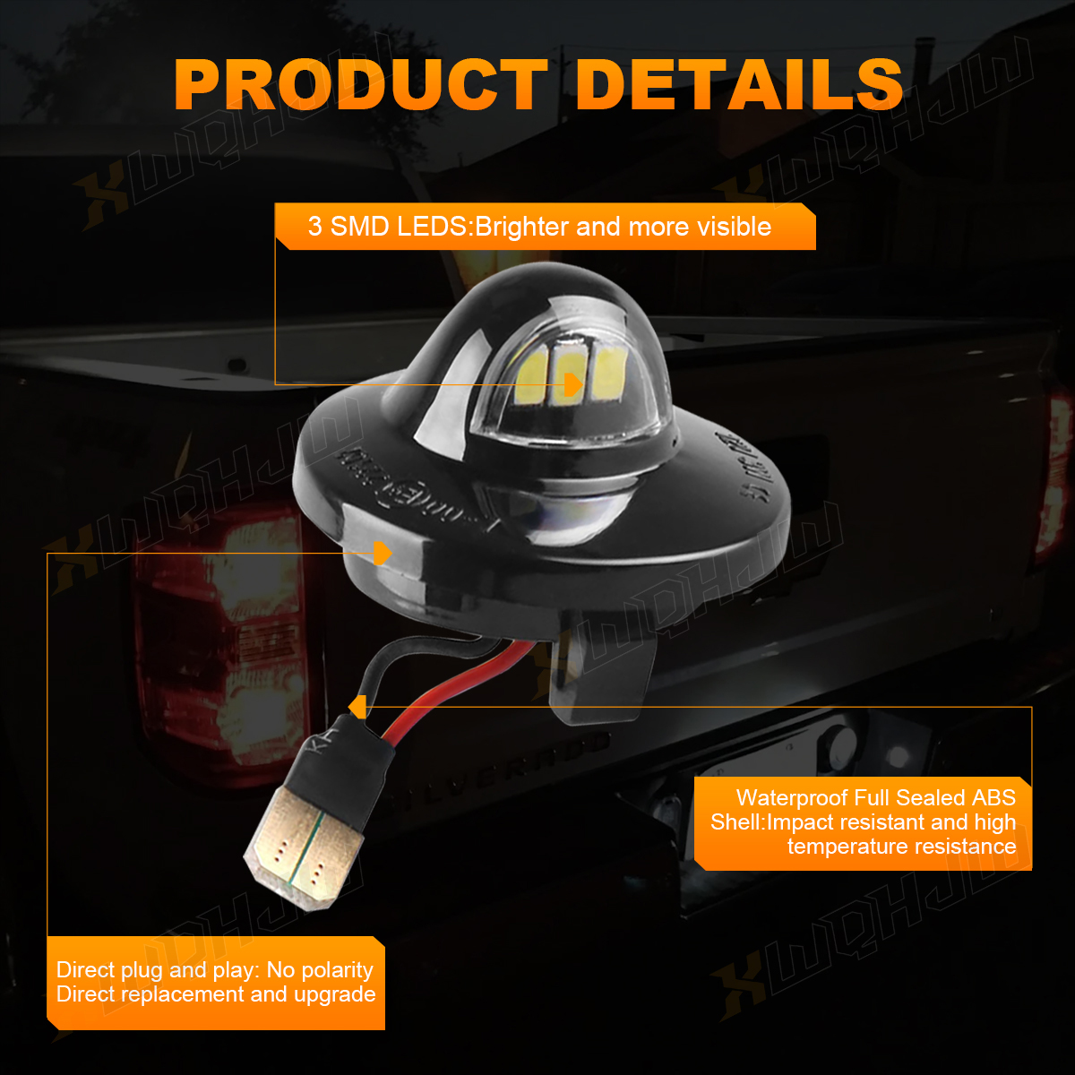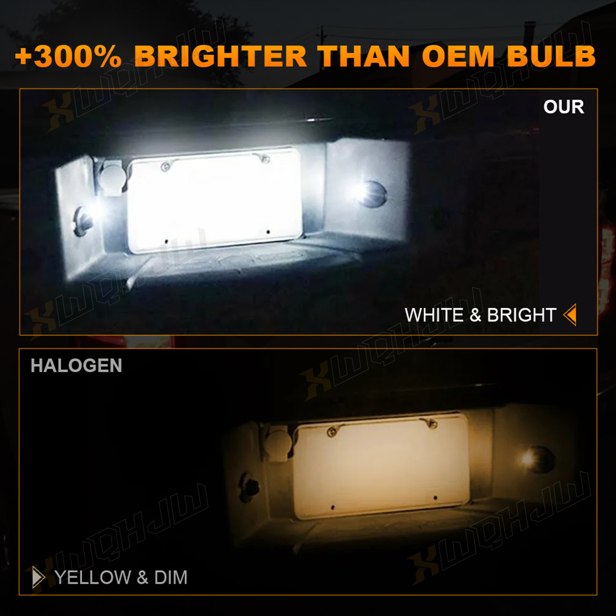Built-in full high power SMD LED chips, XWQHJW LED license plate lights 500% brighter than OEM tag lights, improving the visibility on rear license plate light especially driving at night