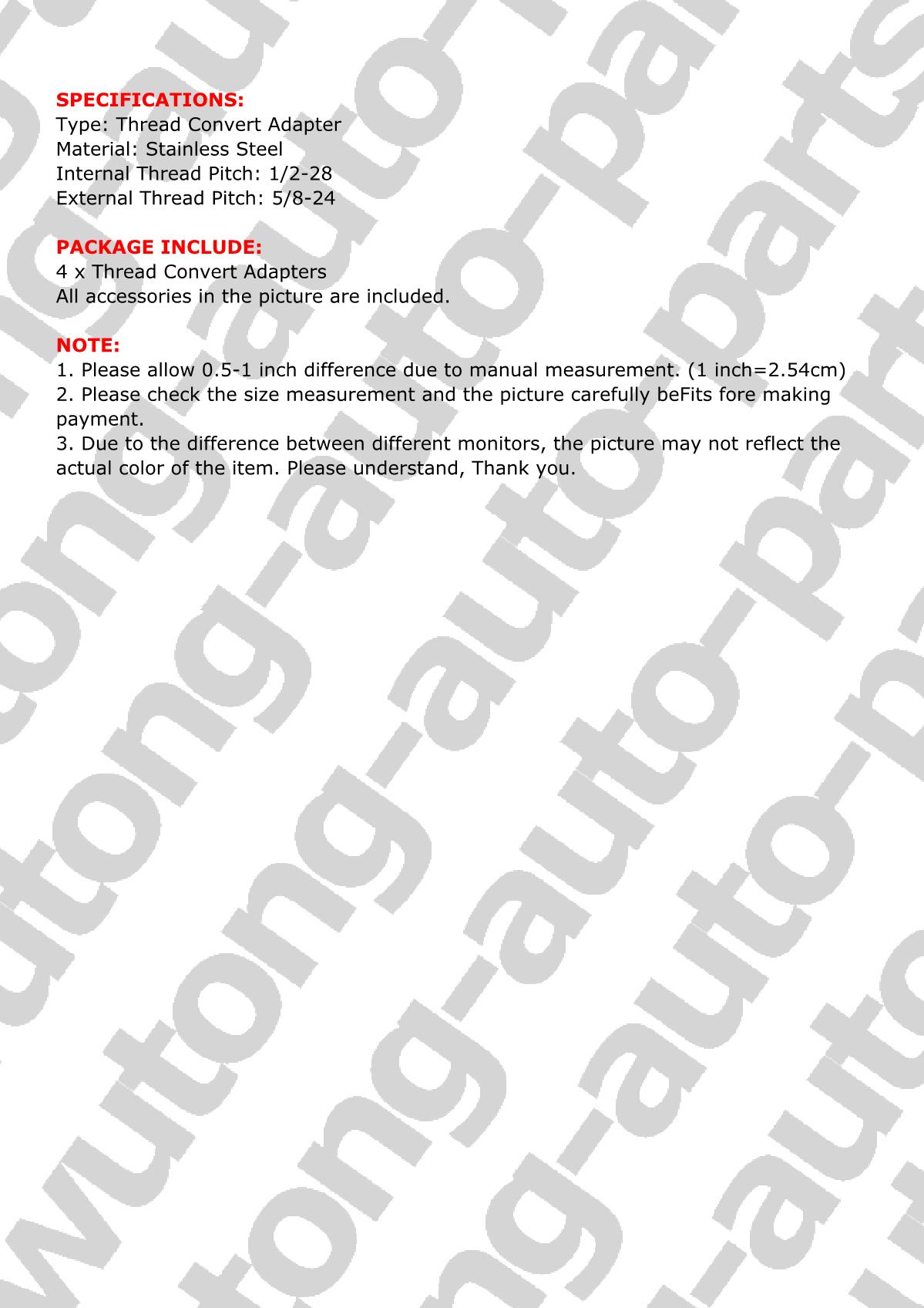 4PCS Stainless Steel Thread Adapter Convert Adapter 1/2 x 28 TPI to 5/8 x 24 TPI