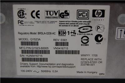 Item: This is a listing for a used HP Q1523A BRSLA-0208-AC External Tape Drive