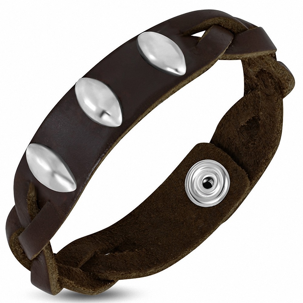 Bracelet pression en cuir véritable de forme ovale en cuir marron Bracelet pression en cuir véritable de forme ovale en cuir marron