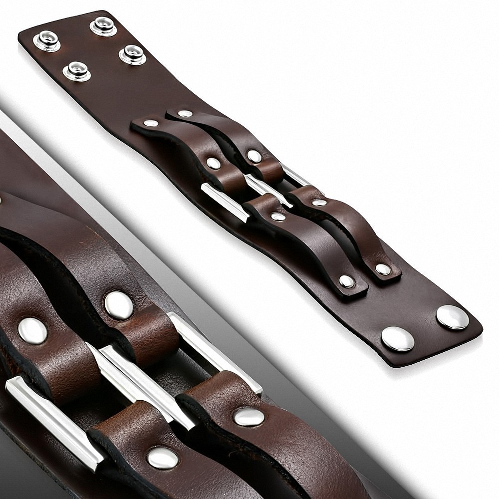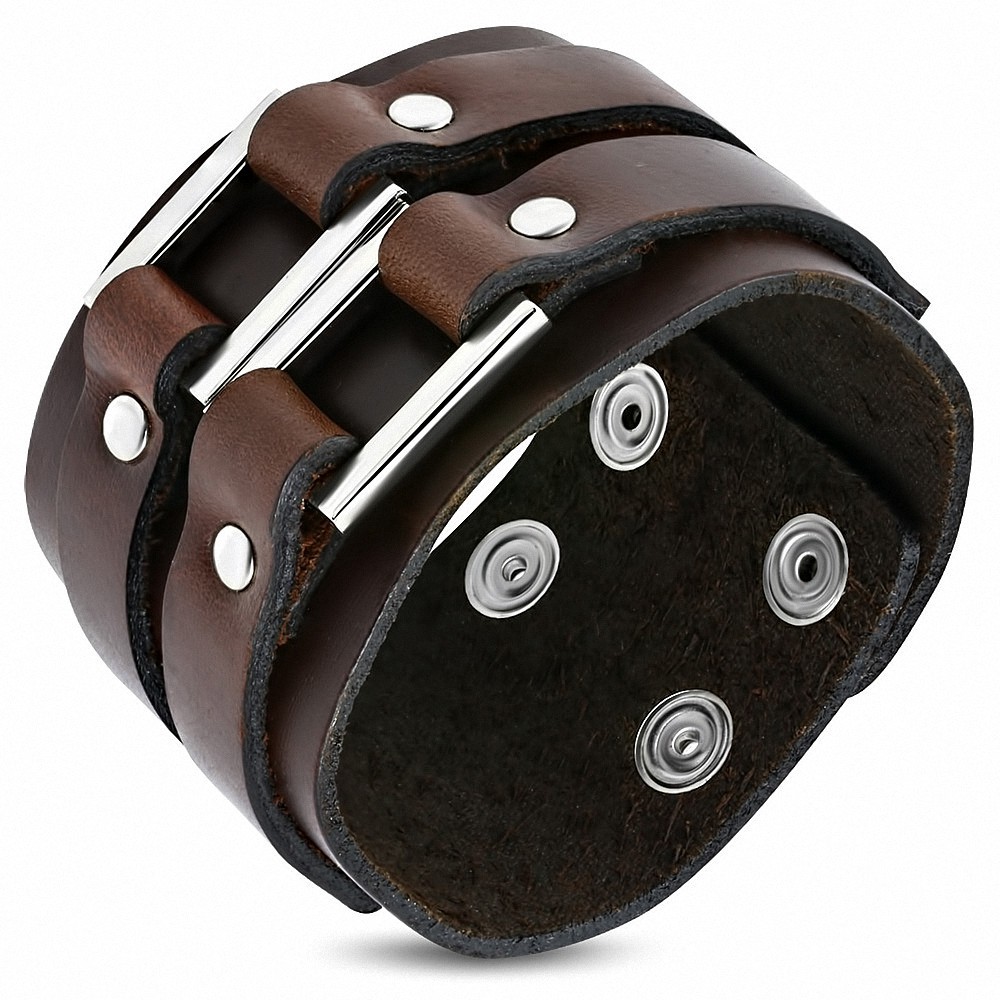 Bracelet en cuir marron véritable rectangle à double boucle avec boucle Bracelet en cuir marron véritable rectangle à double boucle avec boucle
