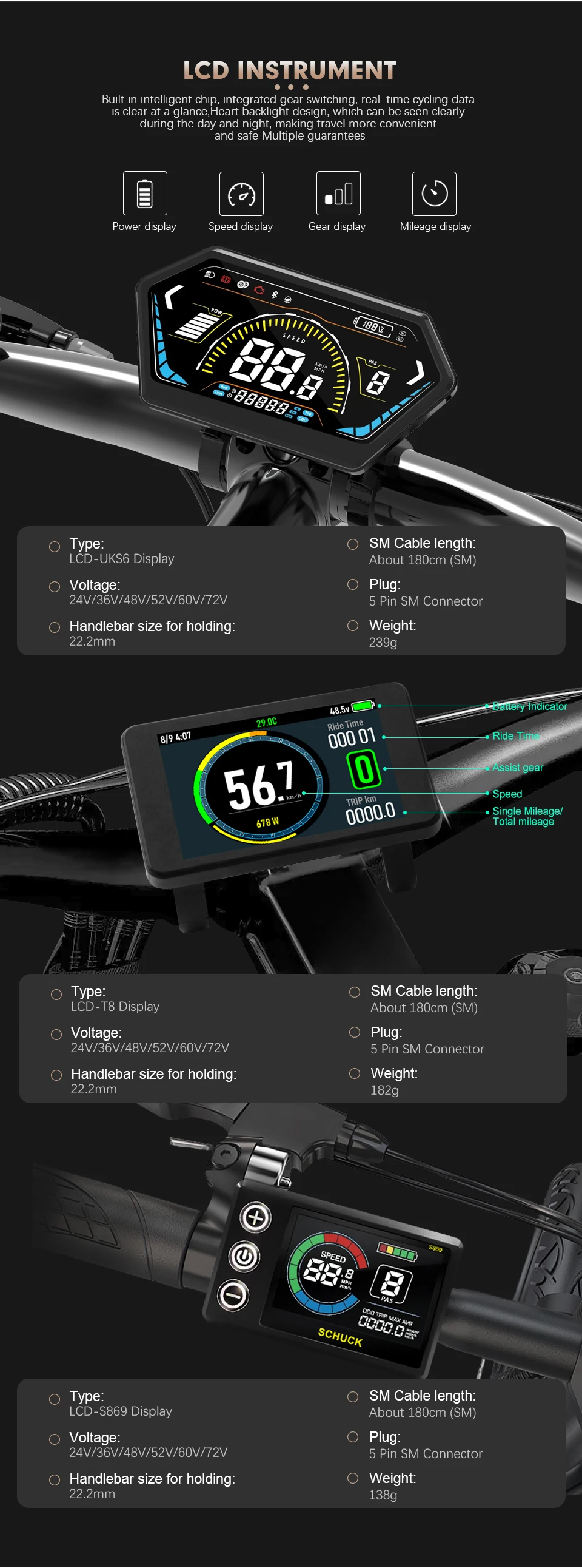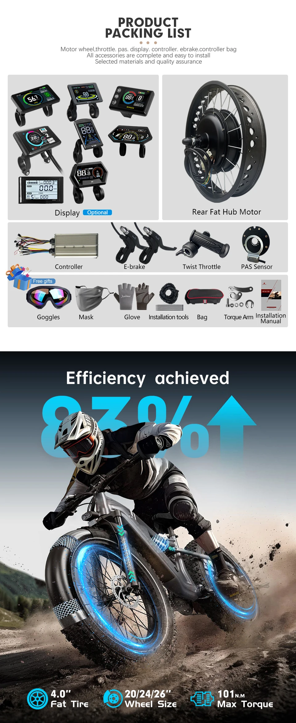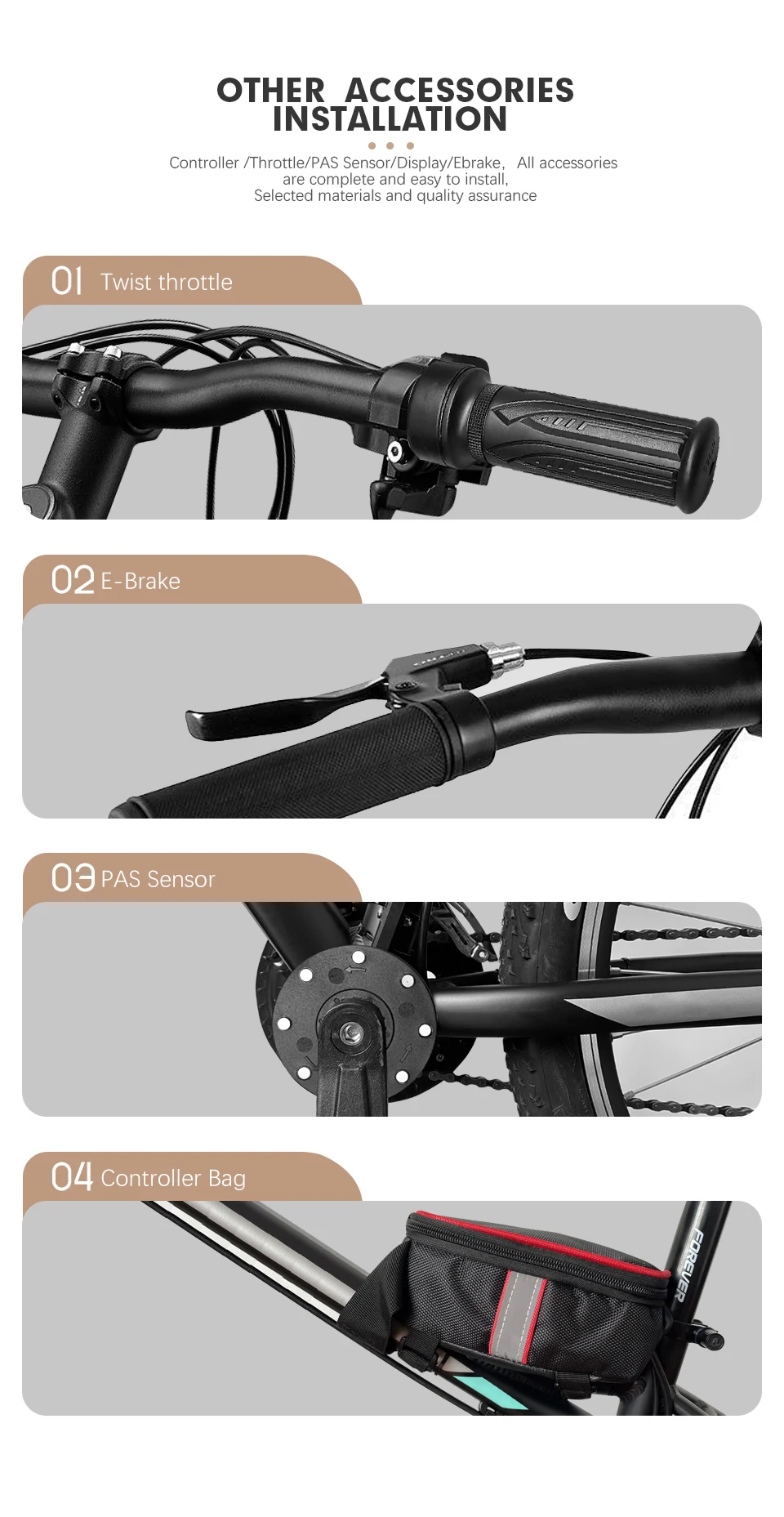 [Complete Accessories] Equipped with all necessary accessories. Front wheel and motor, controller, display (optional), brake lever, thumb throttle, PAS, extension cable, controller package.