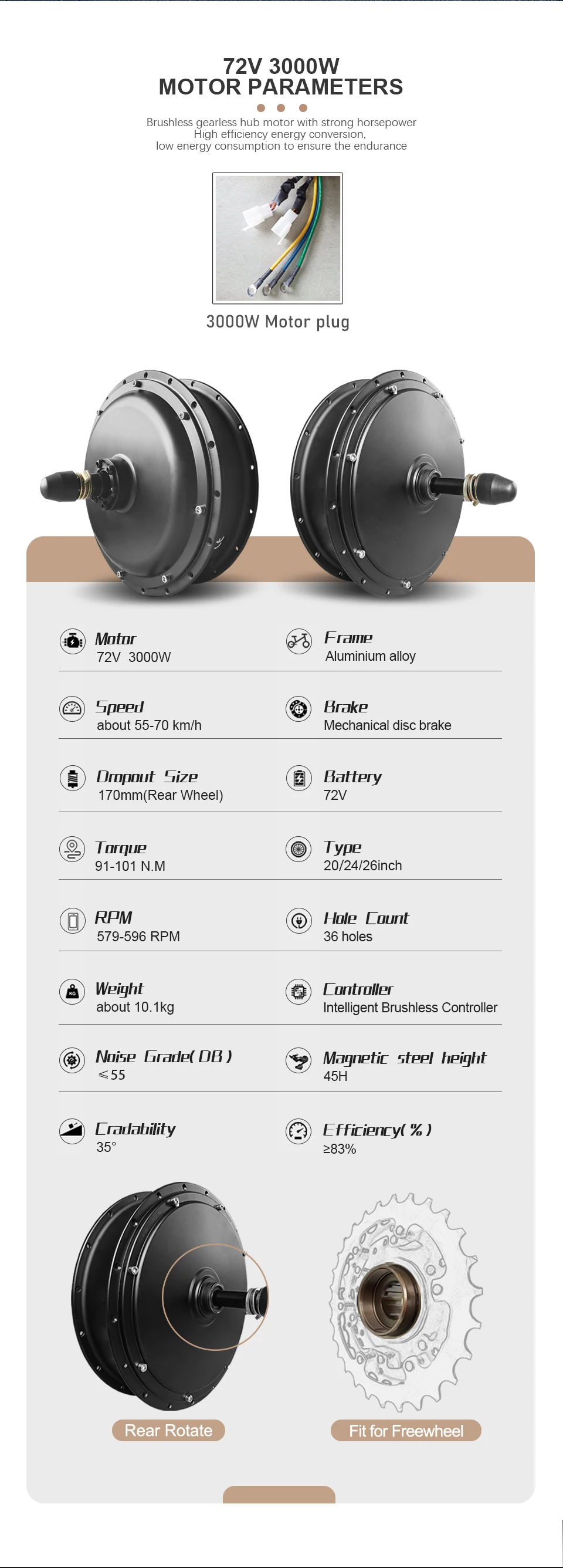 ●1 PCS * 3000W Rear Hub Motor with Rim and Spokes