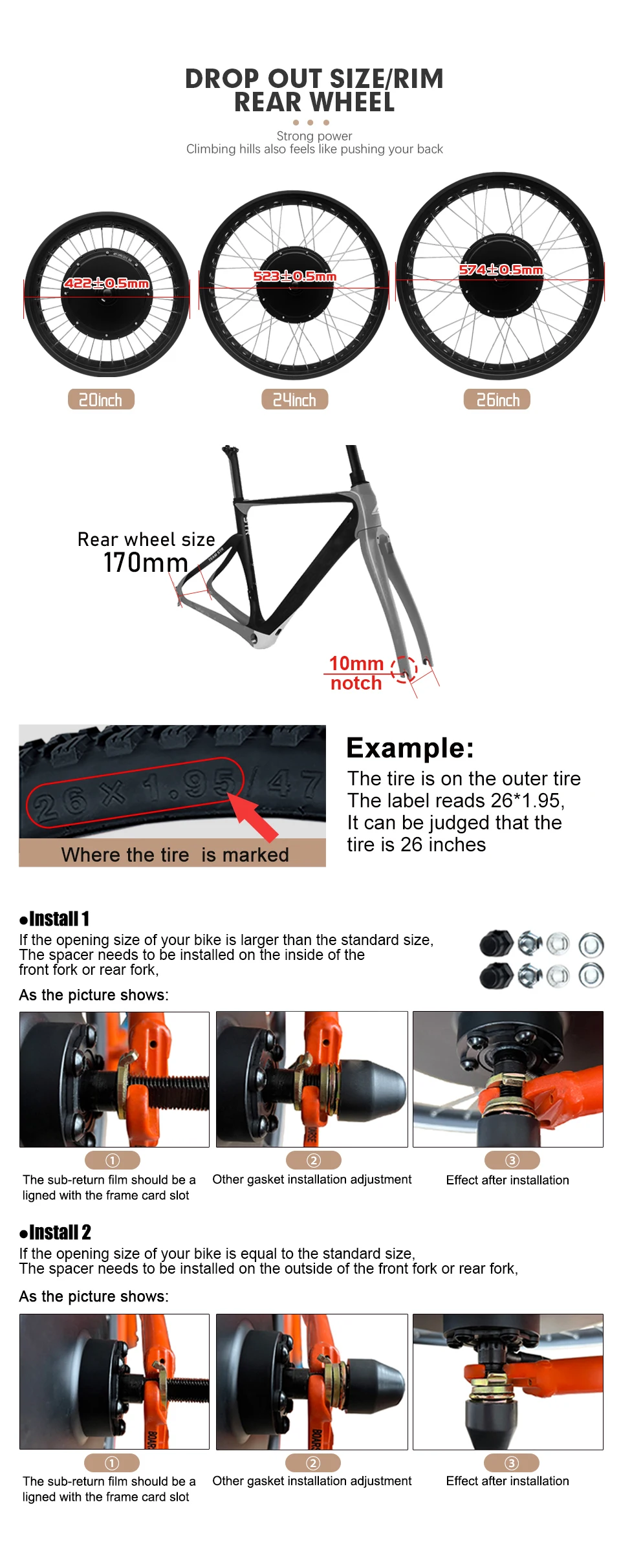 [Simple installation] Easy to convert, DIY front wheel electric bicycle conversion kit, suitable for bicycles with a rear drop size "170mm", easily convert your pedal bicycle to motorized bicycle within 1 hour.