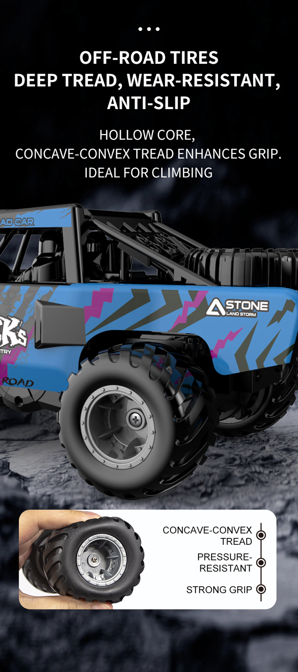 3. Hollow core ,concave-convex tread tread enhances griopideal for climbing