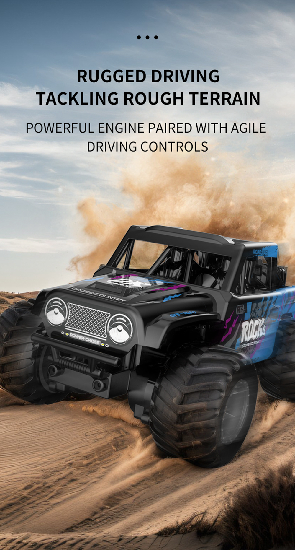 7. Rugged driving tacling rough terrain,powerful engine paired with driving controls