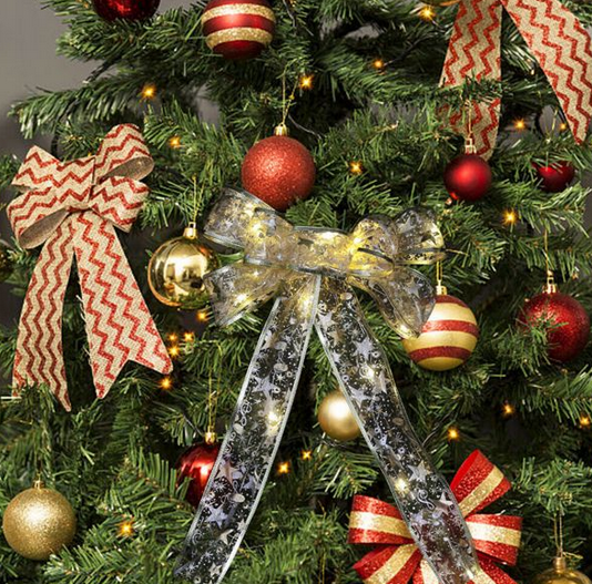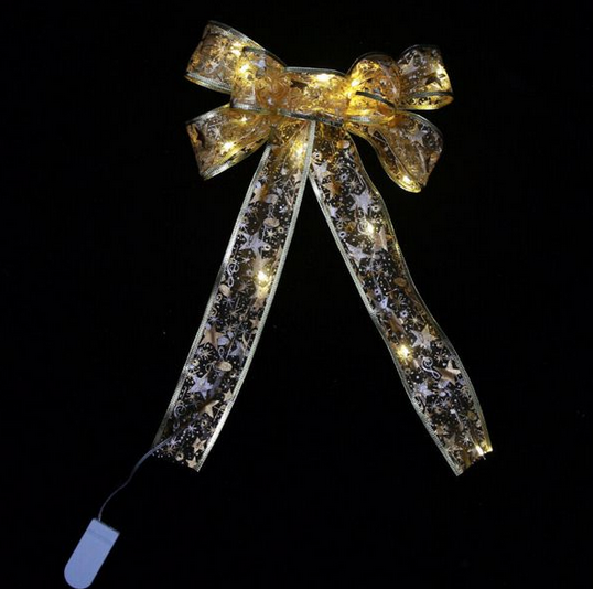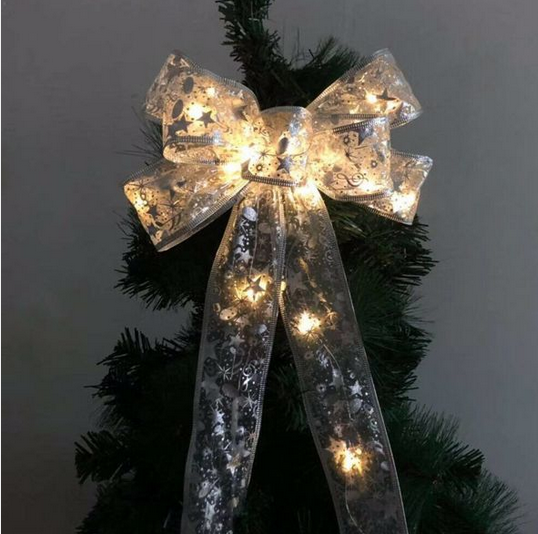 LED Christmas Tree Ornaments Ribbon Bows for Home Christmas Tree Wreaths Decor