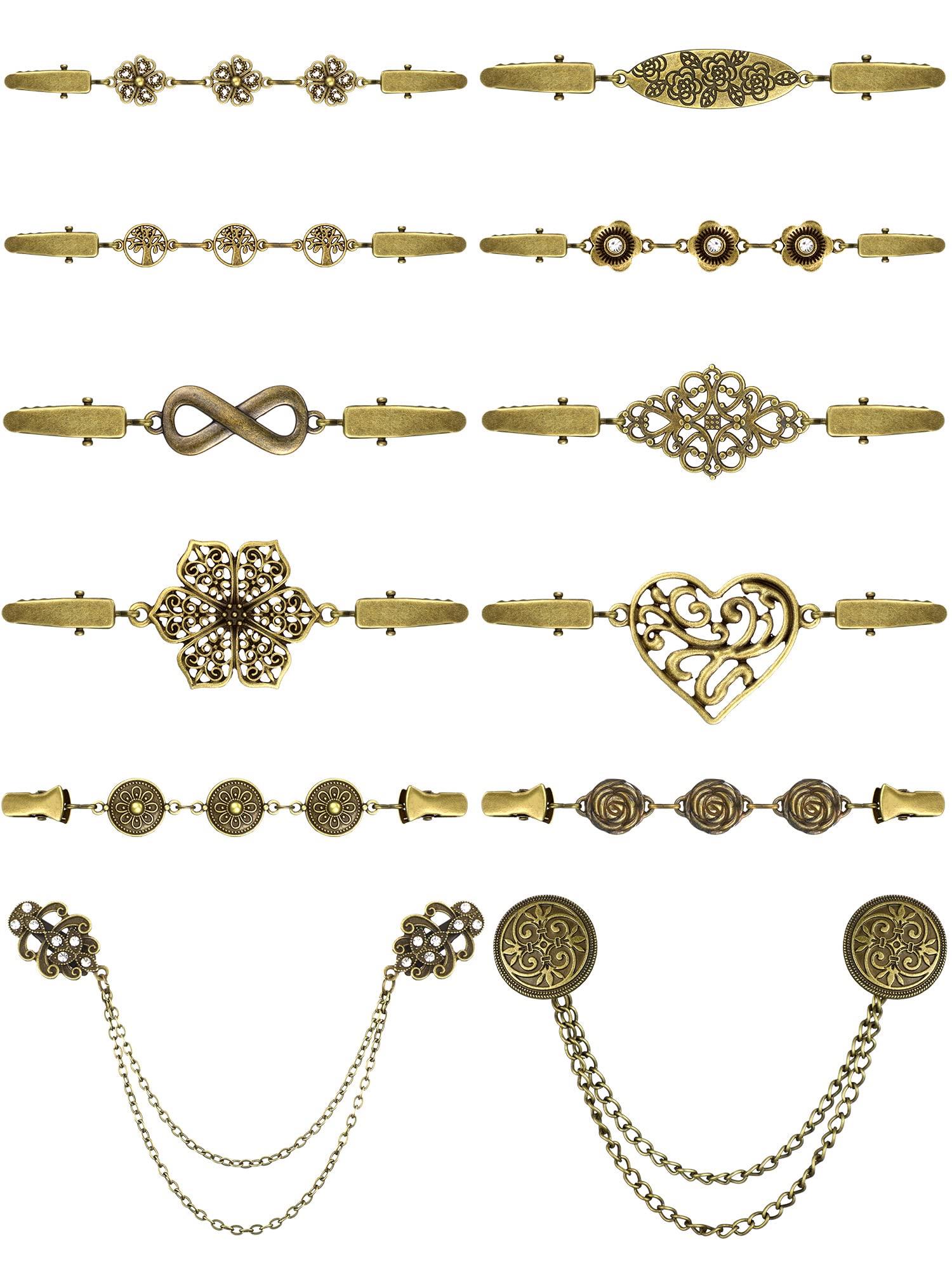 - Package quantity: each package contains 12 pieces of vintage sweater shawl clips and collar chain clips in different designs, enough quantity can meet your daily decoration needs, and allow you to share it with your friends and family