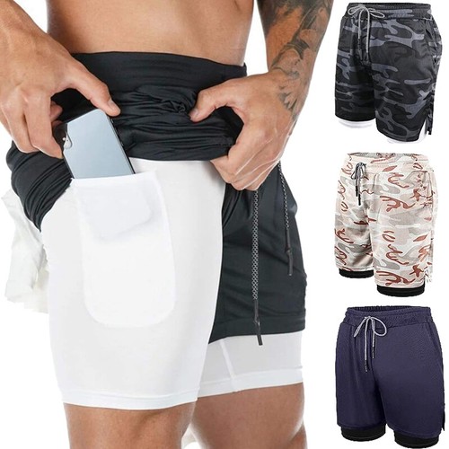 Men 2 in 1 Workout Running Shorts Training Yoga Gym Pants with Zipper Pockets US