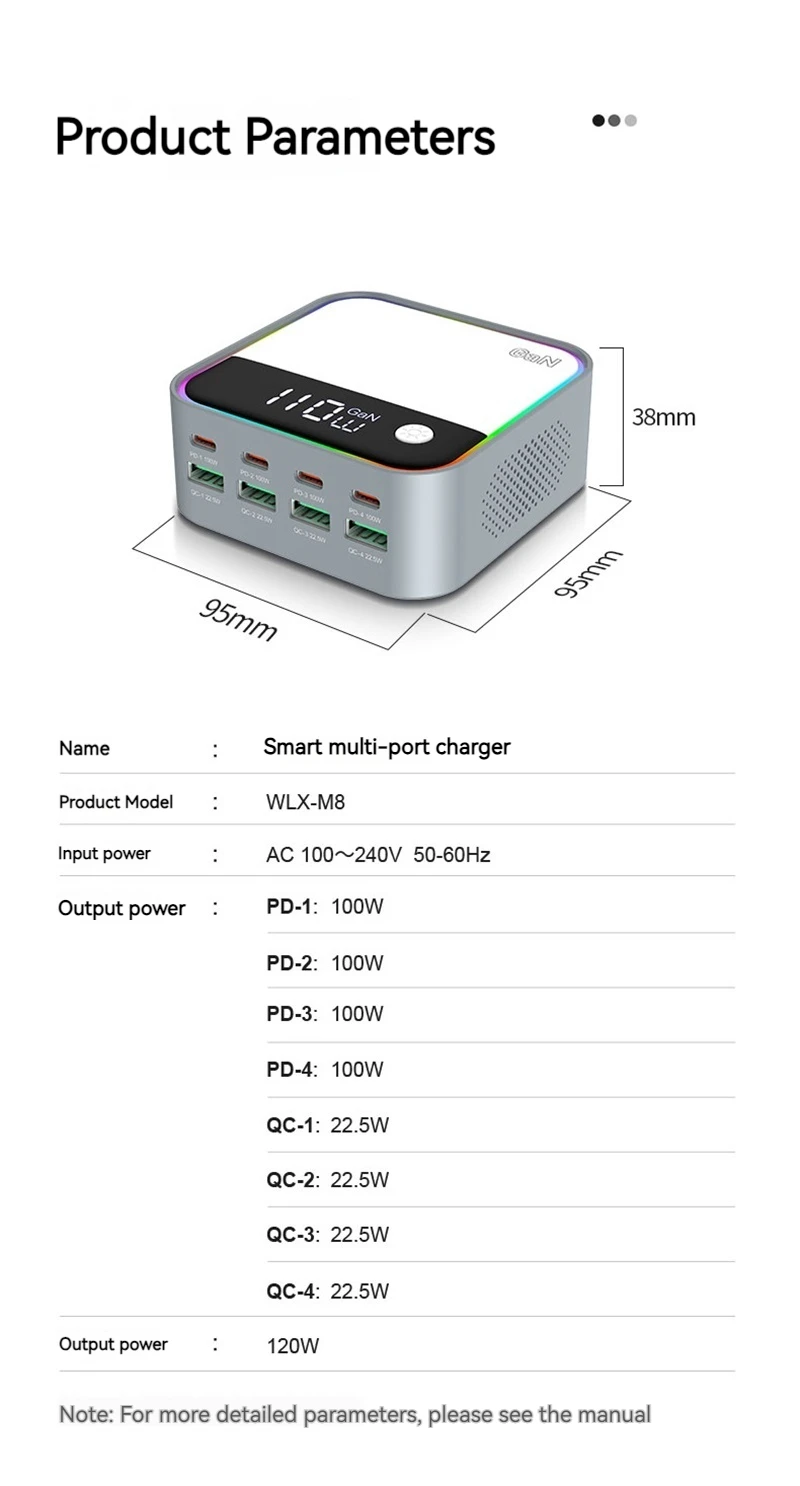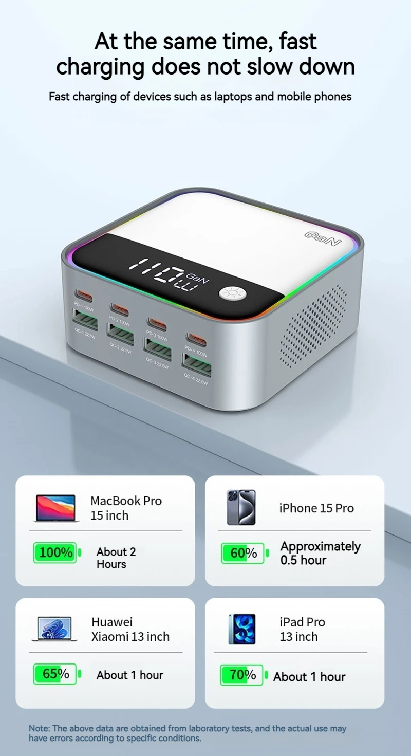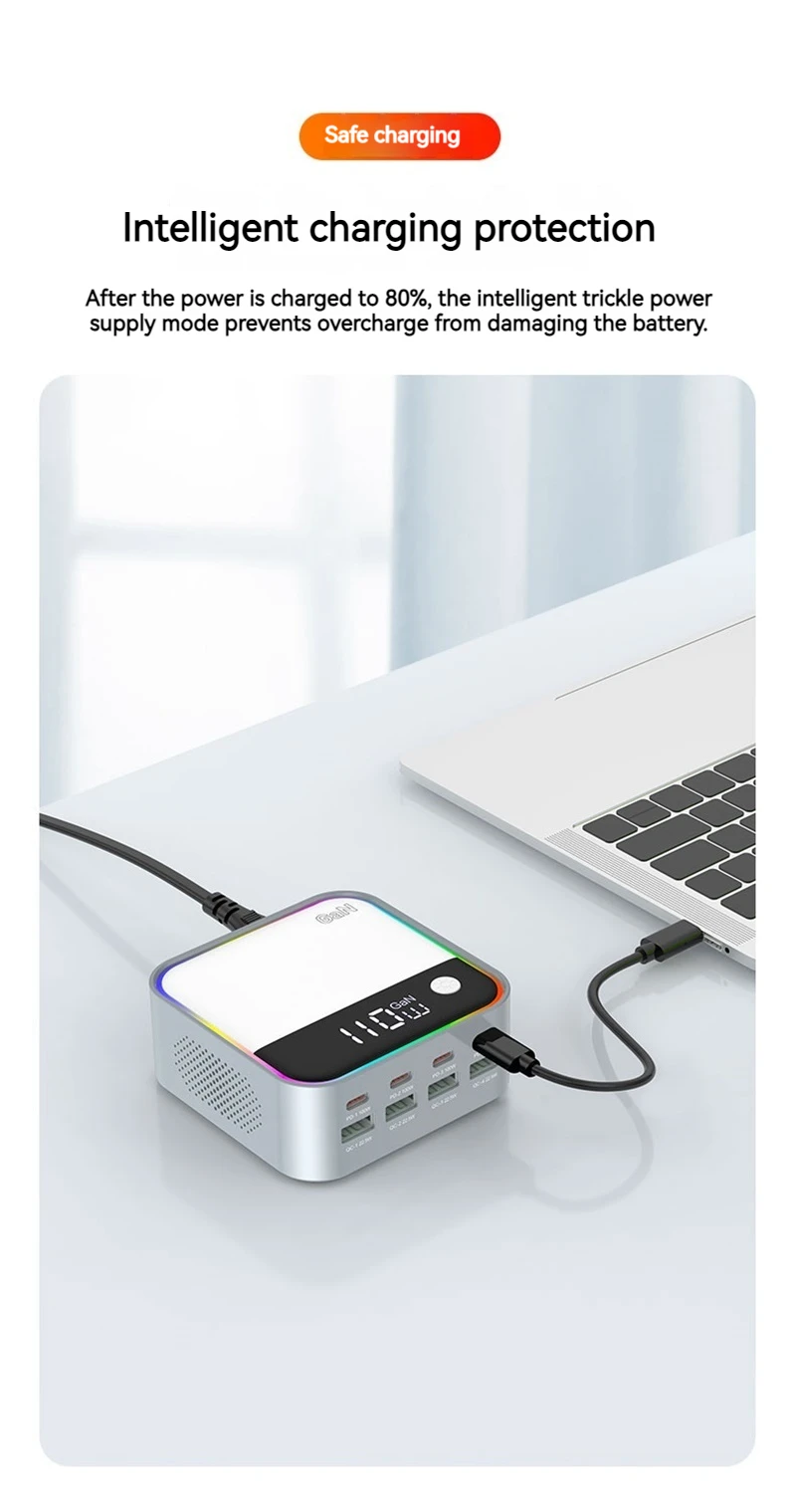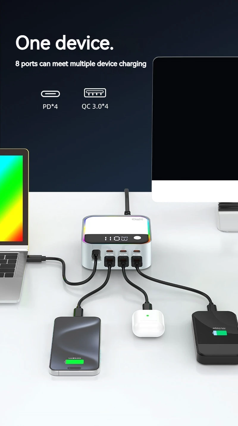 120W GAN Universal USB Type C Charger 8 Port QC3.0 PD 100W Charging Station For Macbook Pro Laptop Iphone 16 15 14 13 12 Samsung