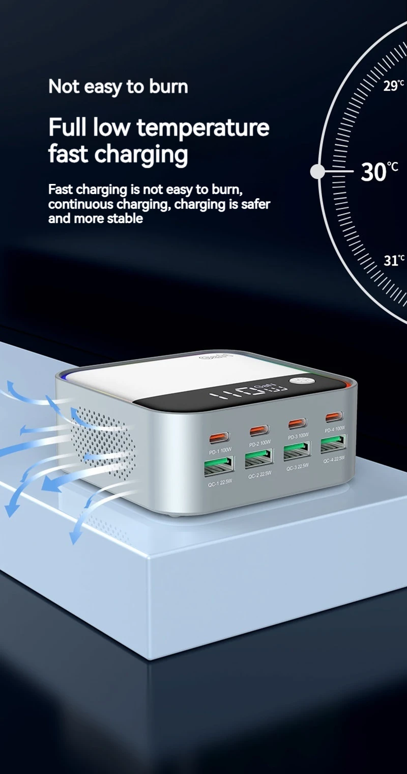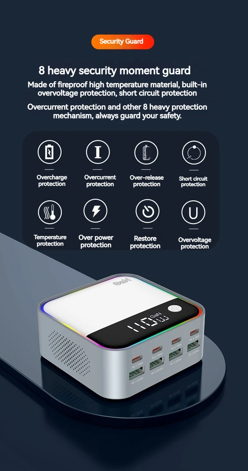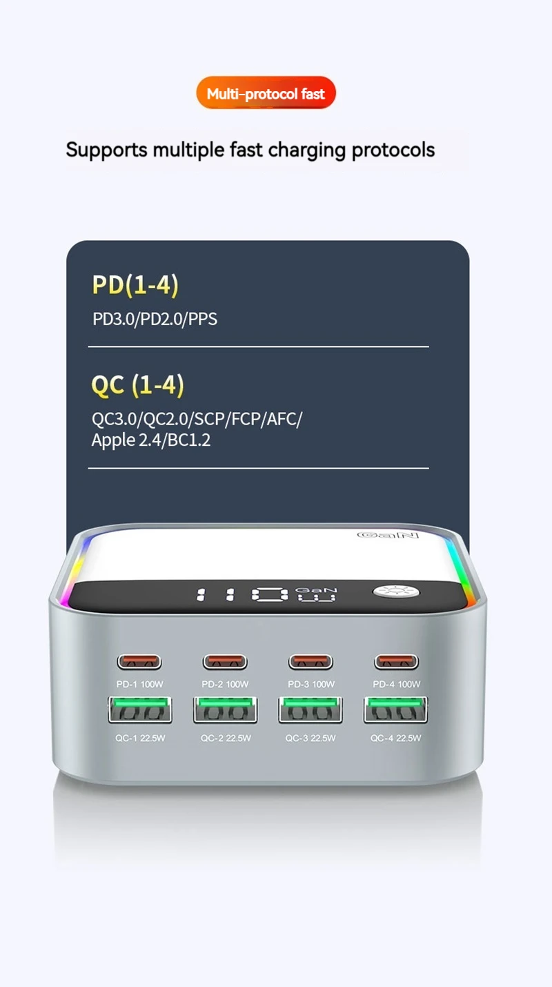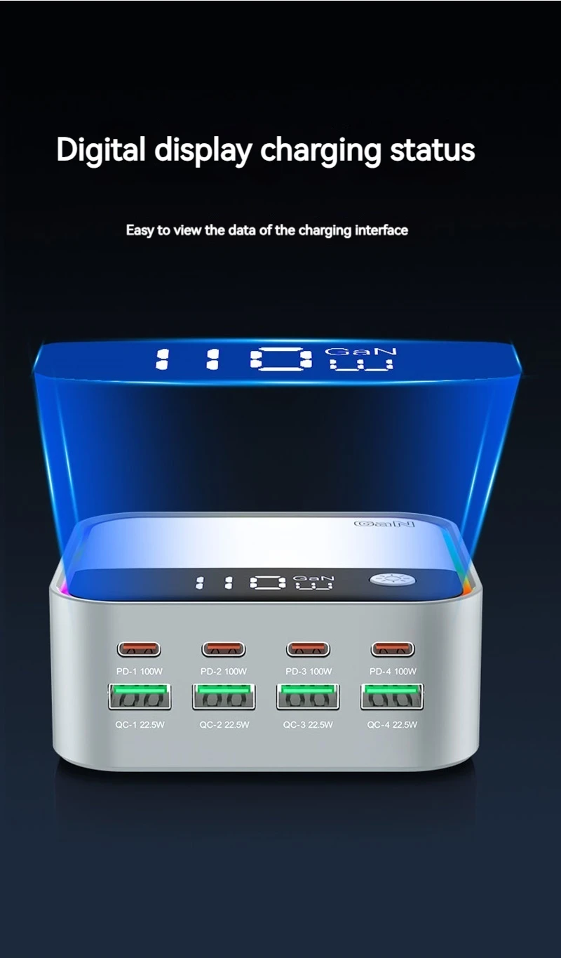 120W GAN Universal USB Type C Charger 8 Port QC3.0 PD 100W Charging Station For Macbook Pro Laptop Iphone 16 15 14 13 12 Samsung