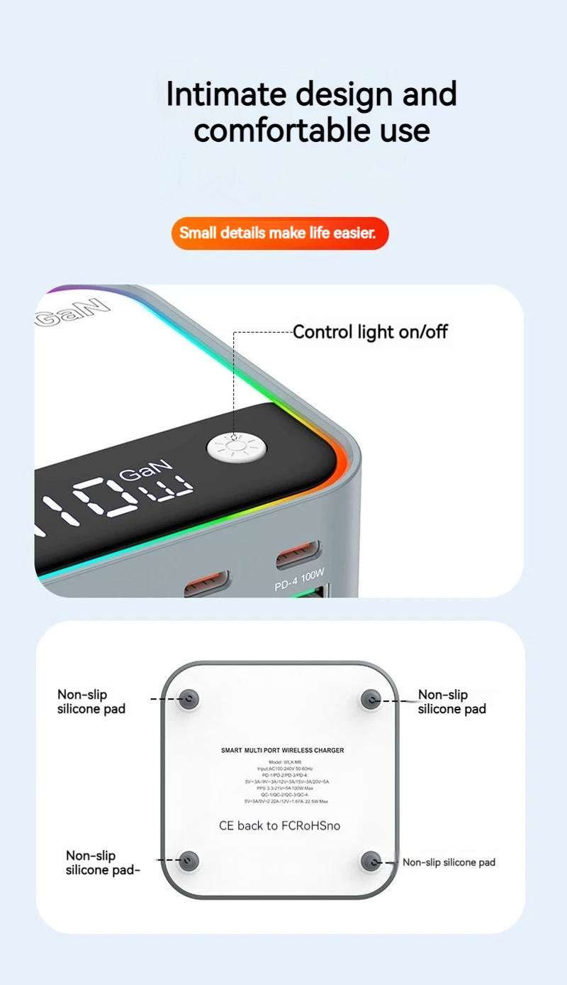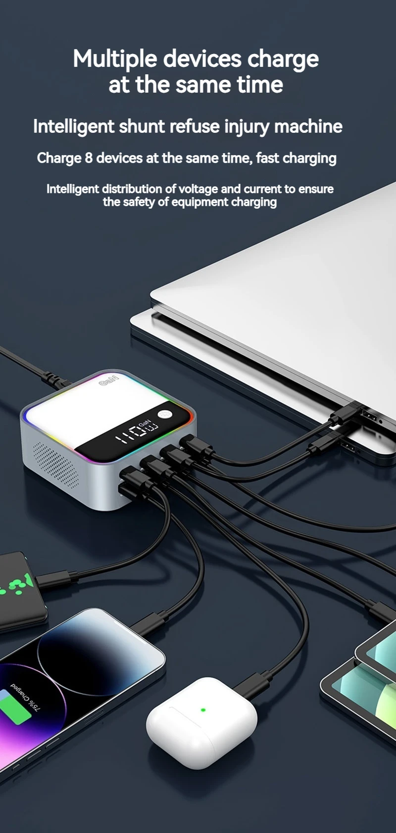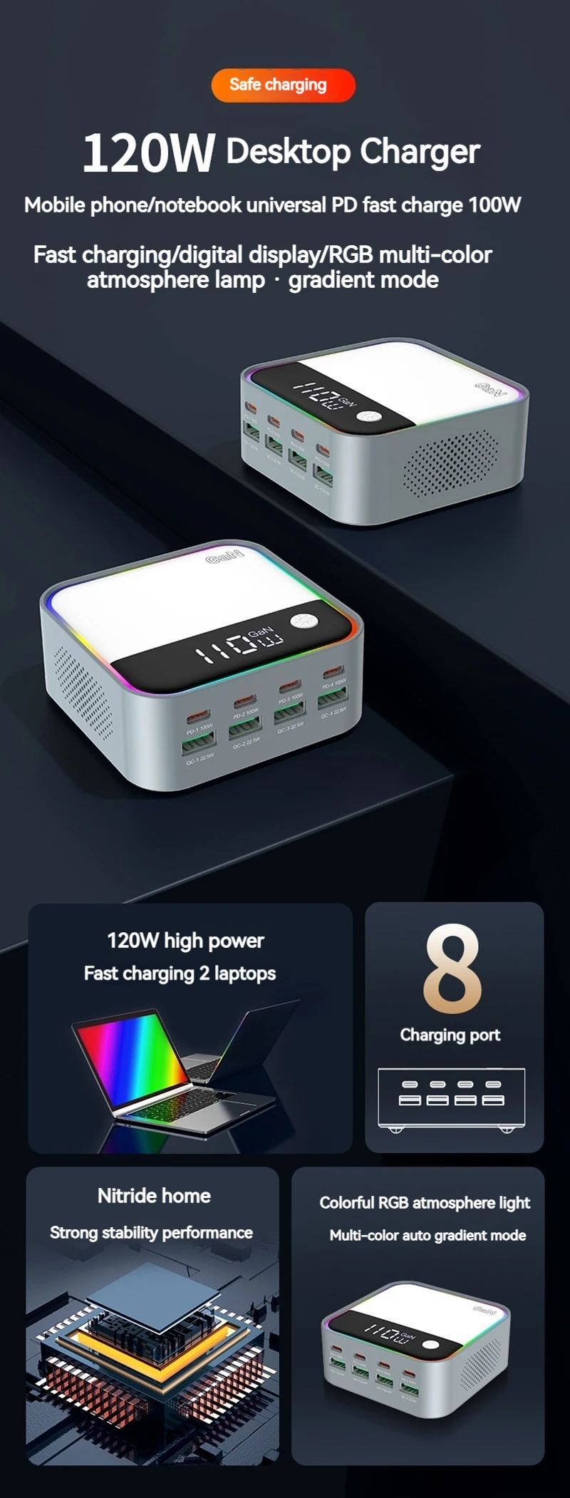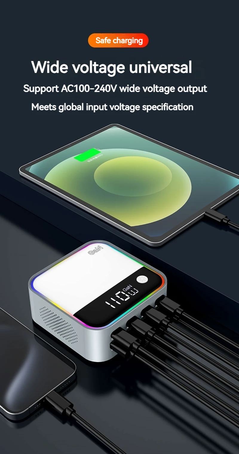 120W GAN Universal USB Type C Charger 8 Port QC3.0 PD 100W Charging Station For Macbook Pro Laptop Iphone 16 15 14 13 12 Samsung