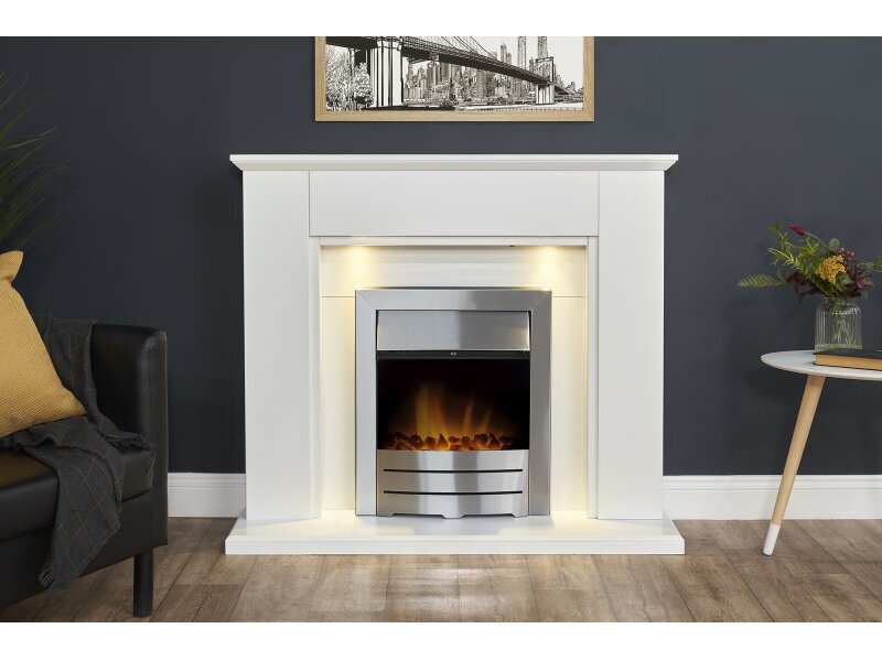 The Adam Eltham fireplace suite is a pure white surround with a modern back panel, but with a twist! The fireplace is supplied with a reversible back panel which provides you with the option of an all pure white or black finish. The Eltham is combined excellently with the brilliant Adam Colorado electric inset fire which provides a heat output of 1kW to 2kW and also features an LED flame effect only option.