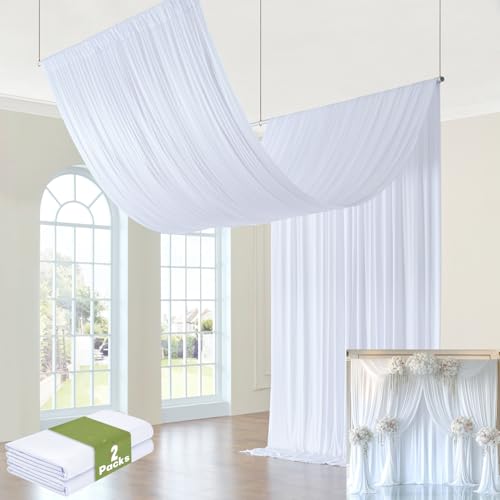 - 16FT Wrinkle Free White Fabric Curtain: This wedding backdrop for reception is made of wrinkle free material, known for its soft and silky texture, which will give you an extraordinary feeling of touch. The backdrop is exquisitely sewn, smooth and durable fpolyester with natural drape, add more elegance and romance to your weddings.