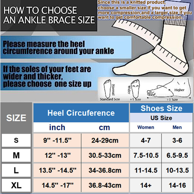 【Satisfaction - 30 Days After Sales 】Worried that it will not fit after your purchase? 4 sizes unisex. Check our size chart to select The size you want. If your size is in between, choose the smaller size for more compression and the larger size for more comfort. You can rest assured! We provide 60 days after-sales service. If you are not completely satisfied with your ankle compression sleeve, please return it for a full refund or replacement. Trust that you will love your ankle brace.