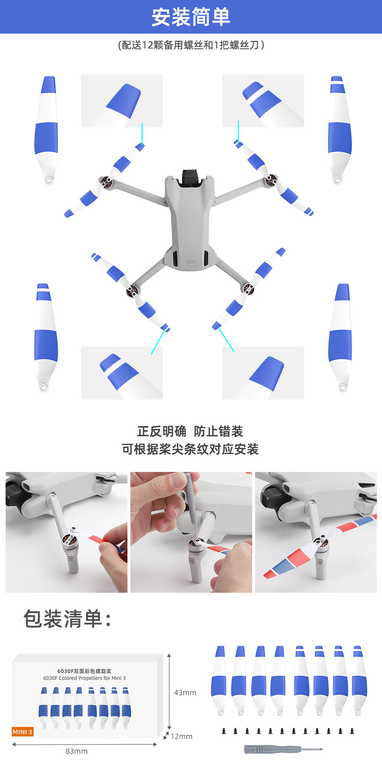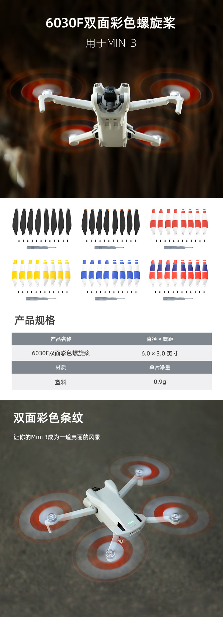For DJI Mini 3 Propeller 6030F Blade Double-sided Color Compact Low-noise Wing 8PCS