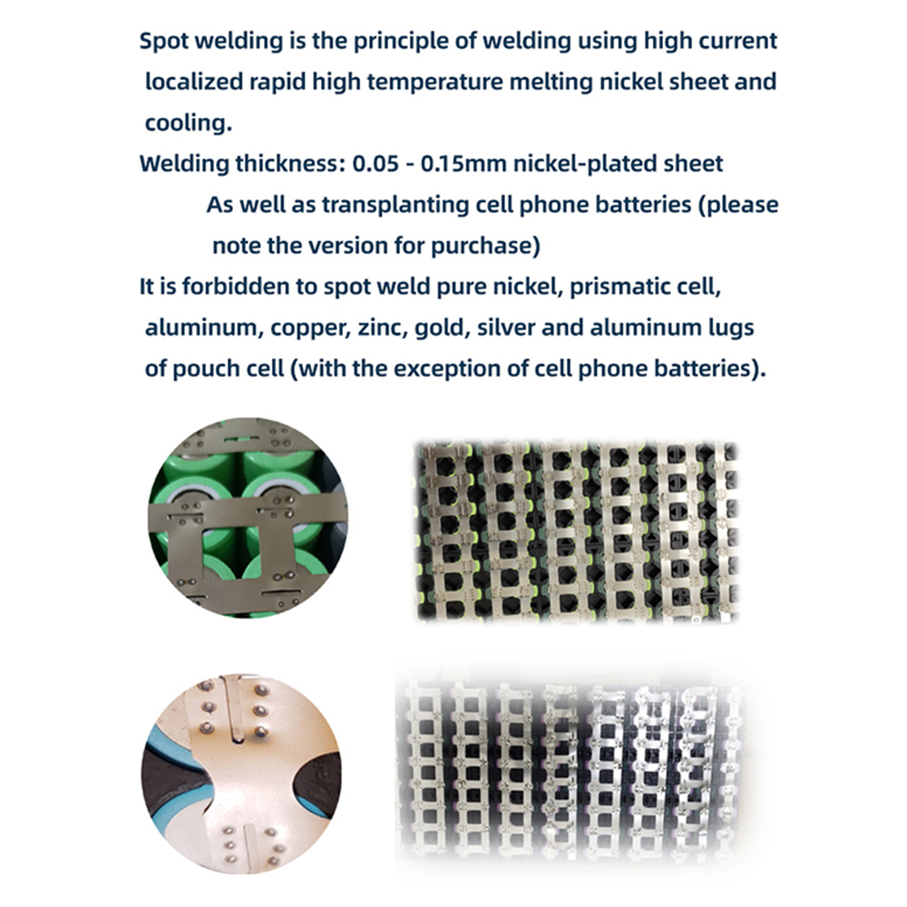 Package Includes: Spot Welder*1 8AWG Spot Welding Pen*2 DC power supply *1 Nickel-plated sheet *1