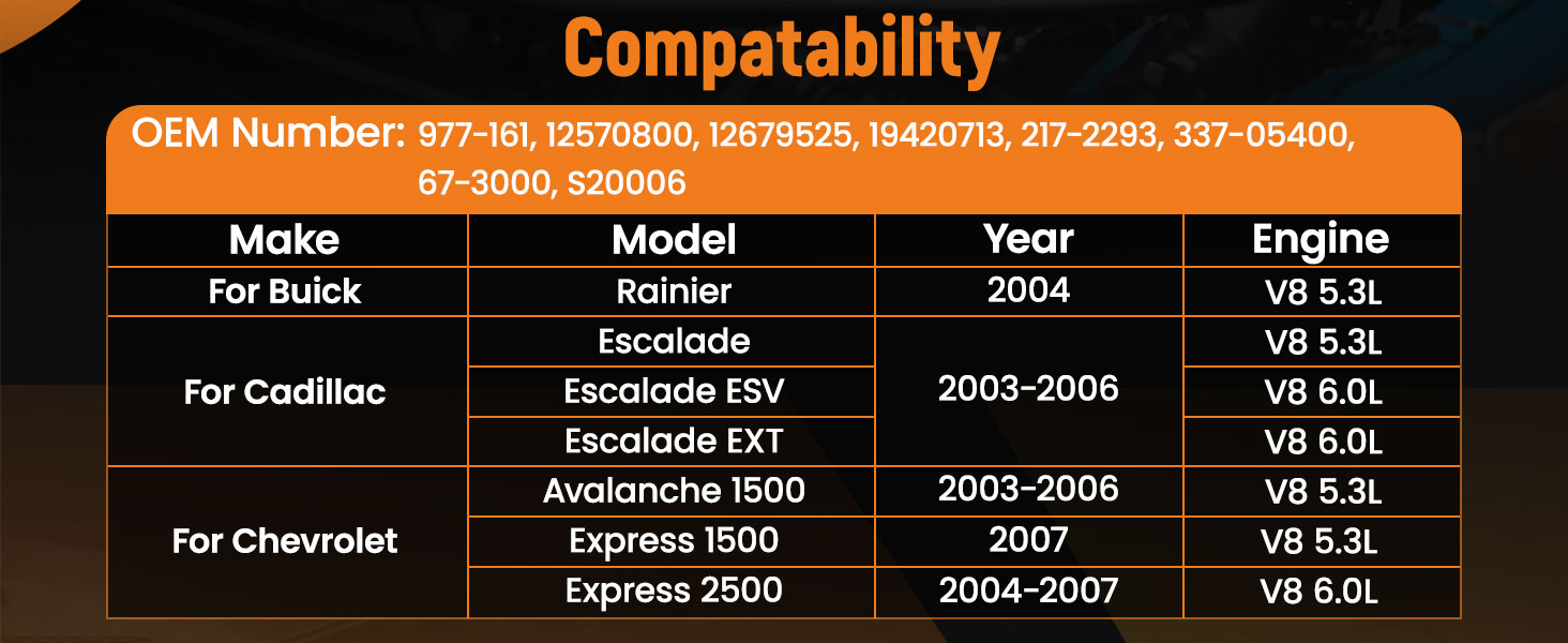 | OEM & Part Number | 977-161,12570800,12679525,19420713,217-2293,337-05400,67-3000,S20006 |